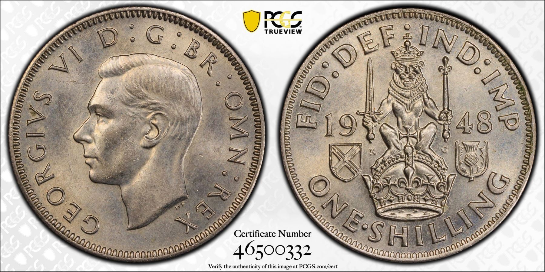 GREAT BRITAIN: George VI, 1936-1952, 1 shilling, 1946, PCGS MS63
