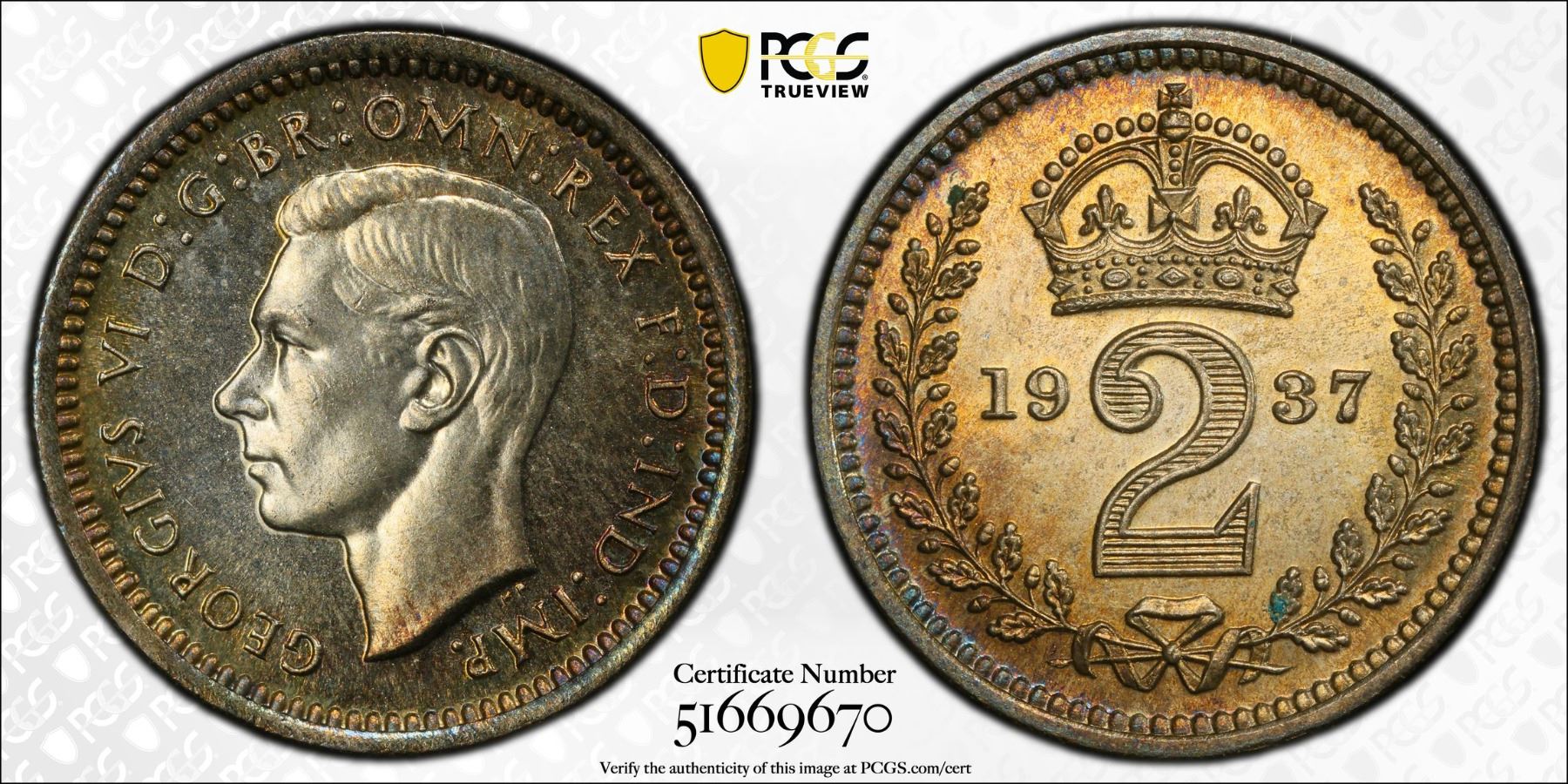 GREAT BRITAIN: George VI, 1936-1952, AR 2 pence, 1937, KM-847, S-4089, Maundy issue, PCGS graded Proof 67.
