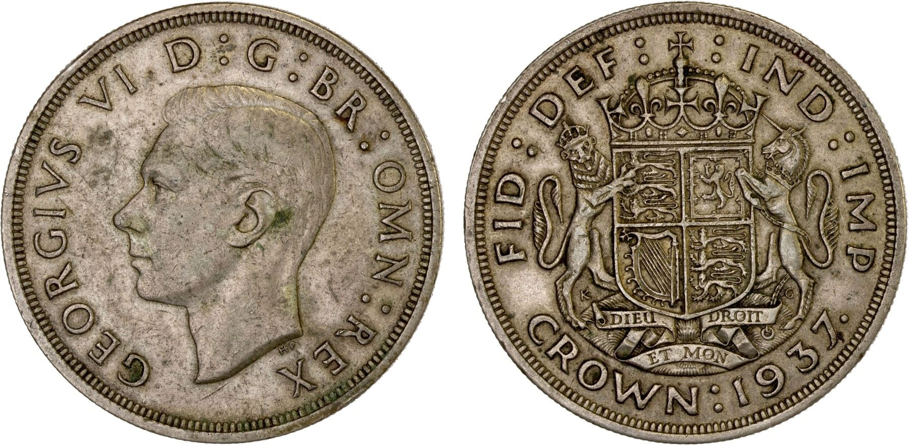 GREAT BRITAIN: George VI, 1936-1952, AR crown, 1937, VF