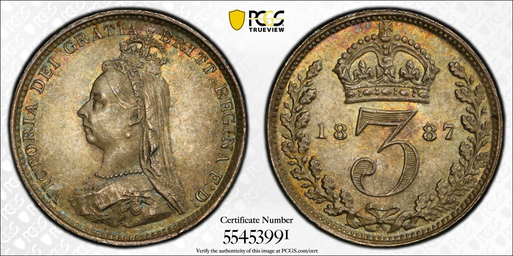 GREAT BRITAIN: Victoria, 1837-1901, AR 3 pence, 1887, PCGS MS64