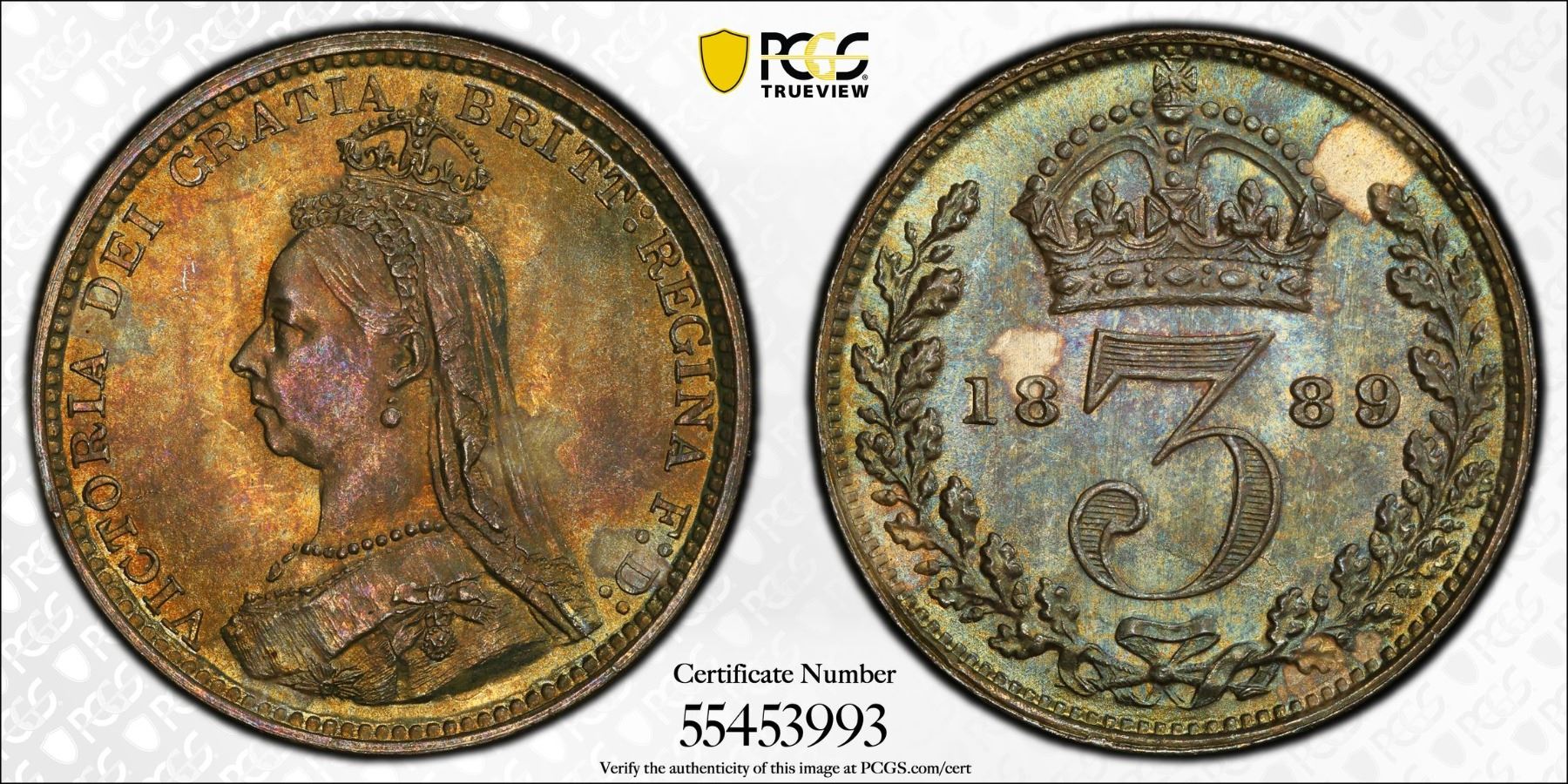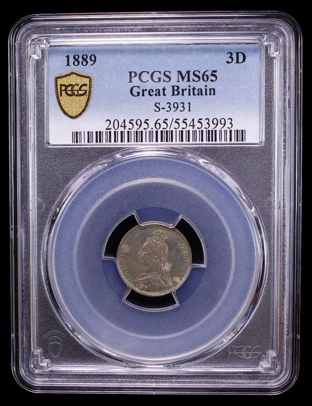 GREAT BRITAIN: Victoria, 1837-1901, AR 3 pence, 1889, PCGS MS65