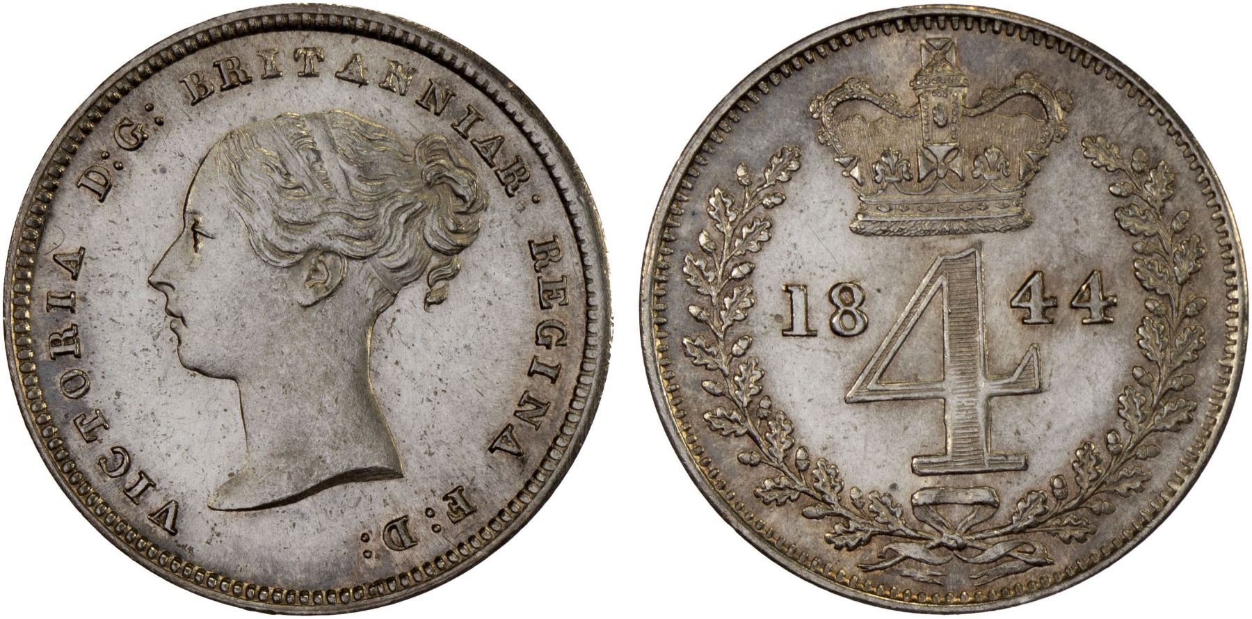 GREAT BRITAIN: Victoria, 1837-1901, AR 4 pence, 1844, KM-732, Spink-3917, Maundy type, lightly hairlined, otherwise very choice, Unc.