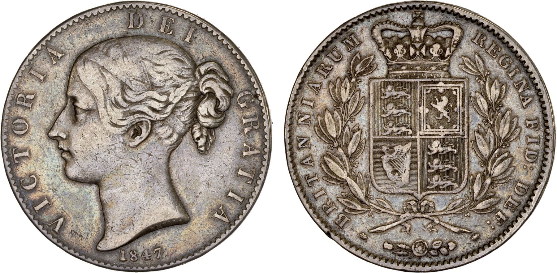 GREAT BRITAIN: Victoria, 1837-1901, AR crown, 1847, F-VF
