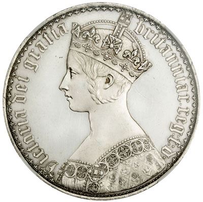GREAT BRITAIN: Victoria, 1837-1901, AR crown, 1847, KM-744, S-3883., gothic type, minor scratch behind head, UN DECIMO on edge, NGC graded Proof 60.