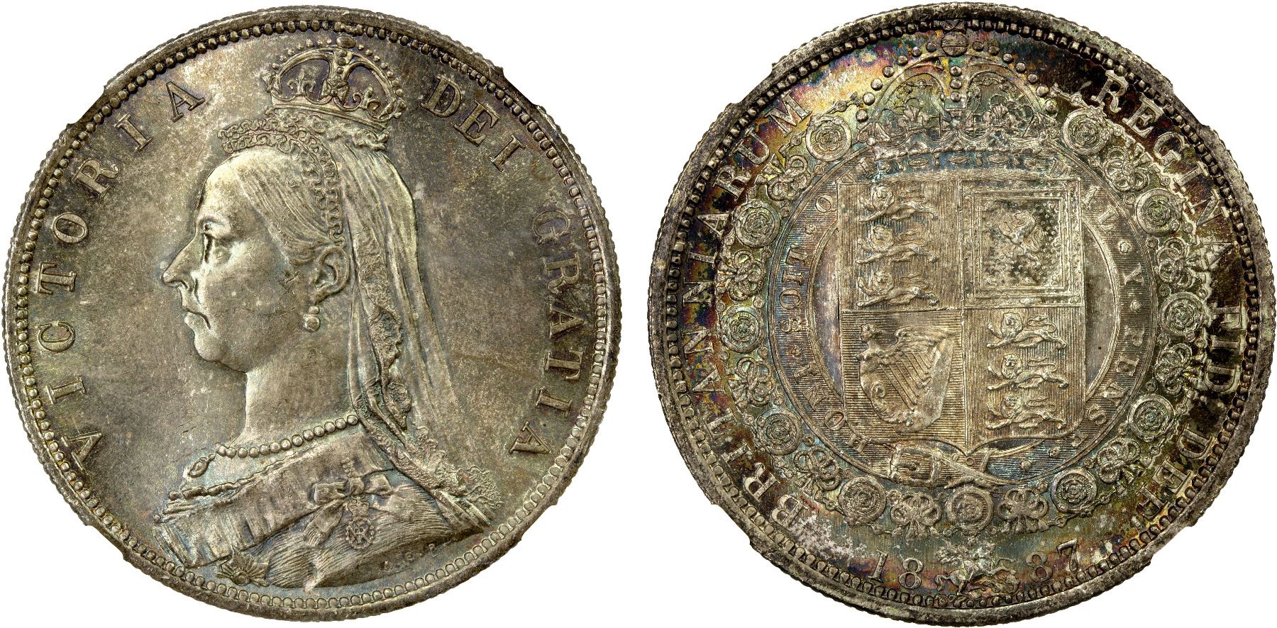 GREAT BRITAIN: Victoria, 1837-1901, AR halfcrown, 1887, NGC MS66