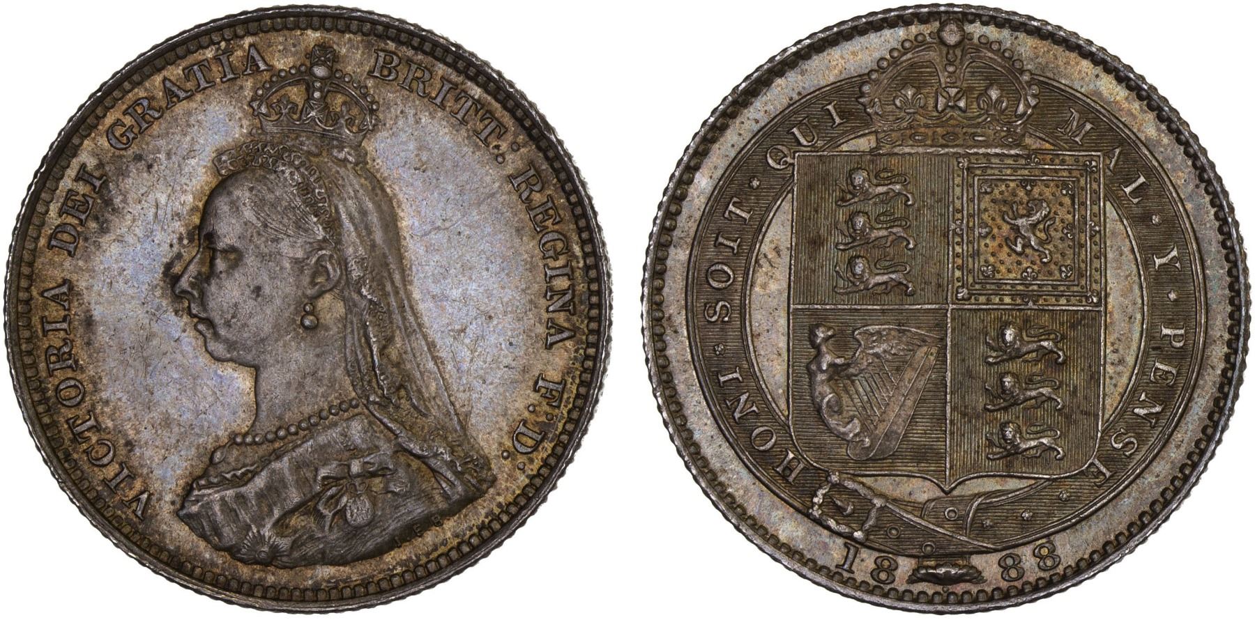 GREAT BRITAIN: Victoria, 1837-1901, AR shilling, 1888/7, Unc