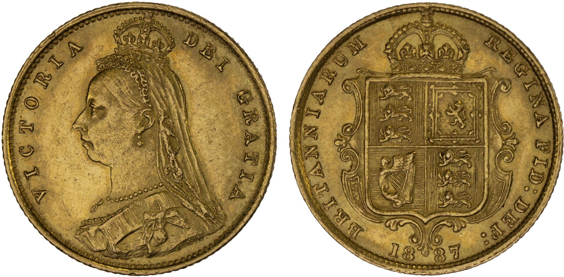 GREAT BRITAIN: Victoria, 1837-1901, AV 1/2 sovereign, 1887, KM-766, Spink-3869, Jubilee type, lightly cleaned, XF-AU.