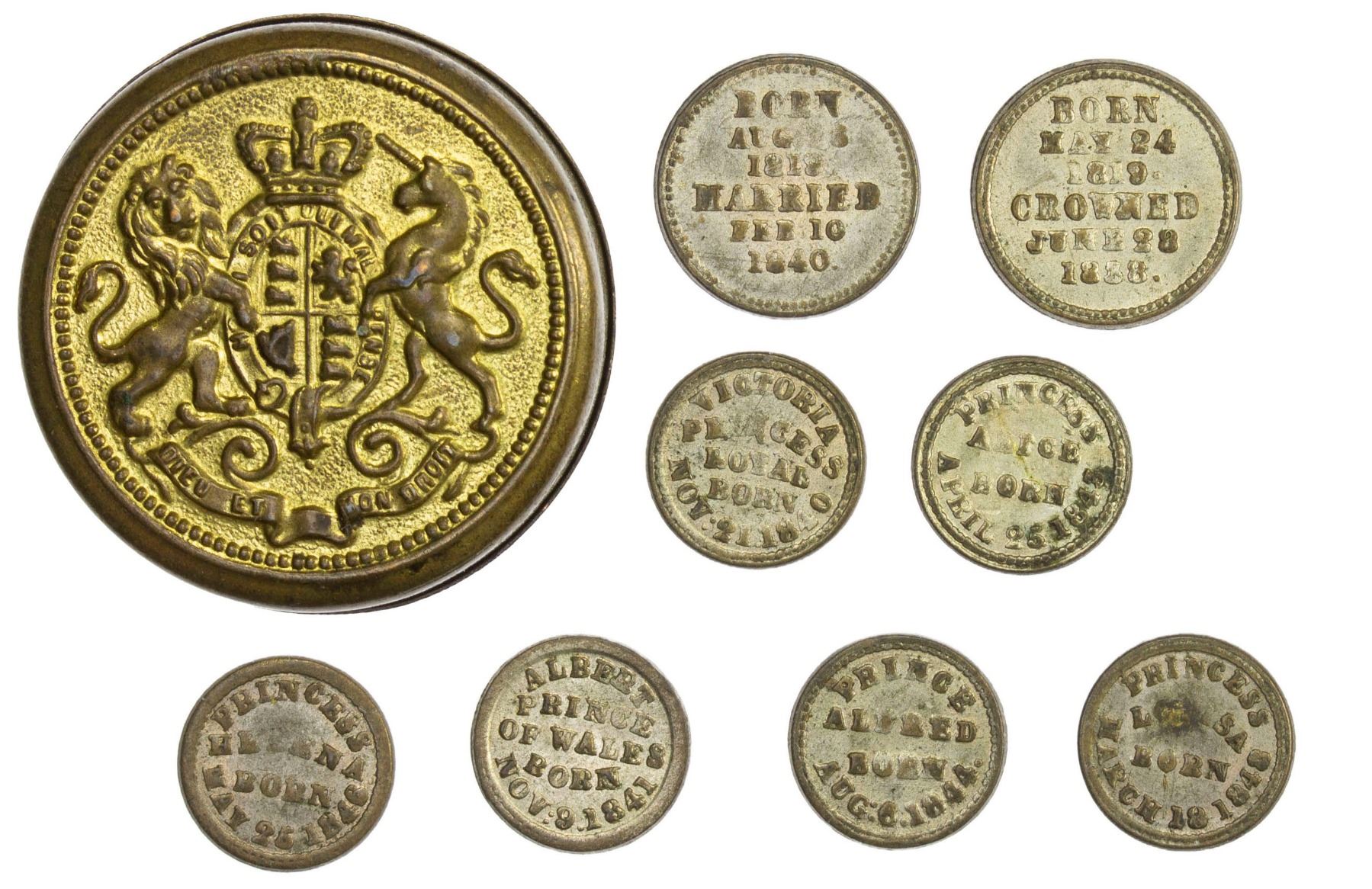 GREAT BRITAIN: Victoria, 1837-1901, box medal and miniatures, ND (ca. 1850's), AU