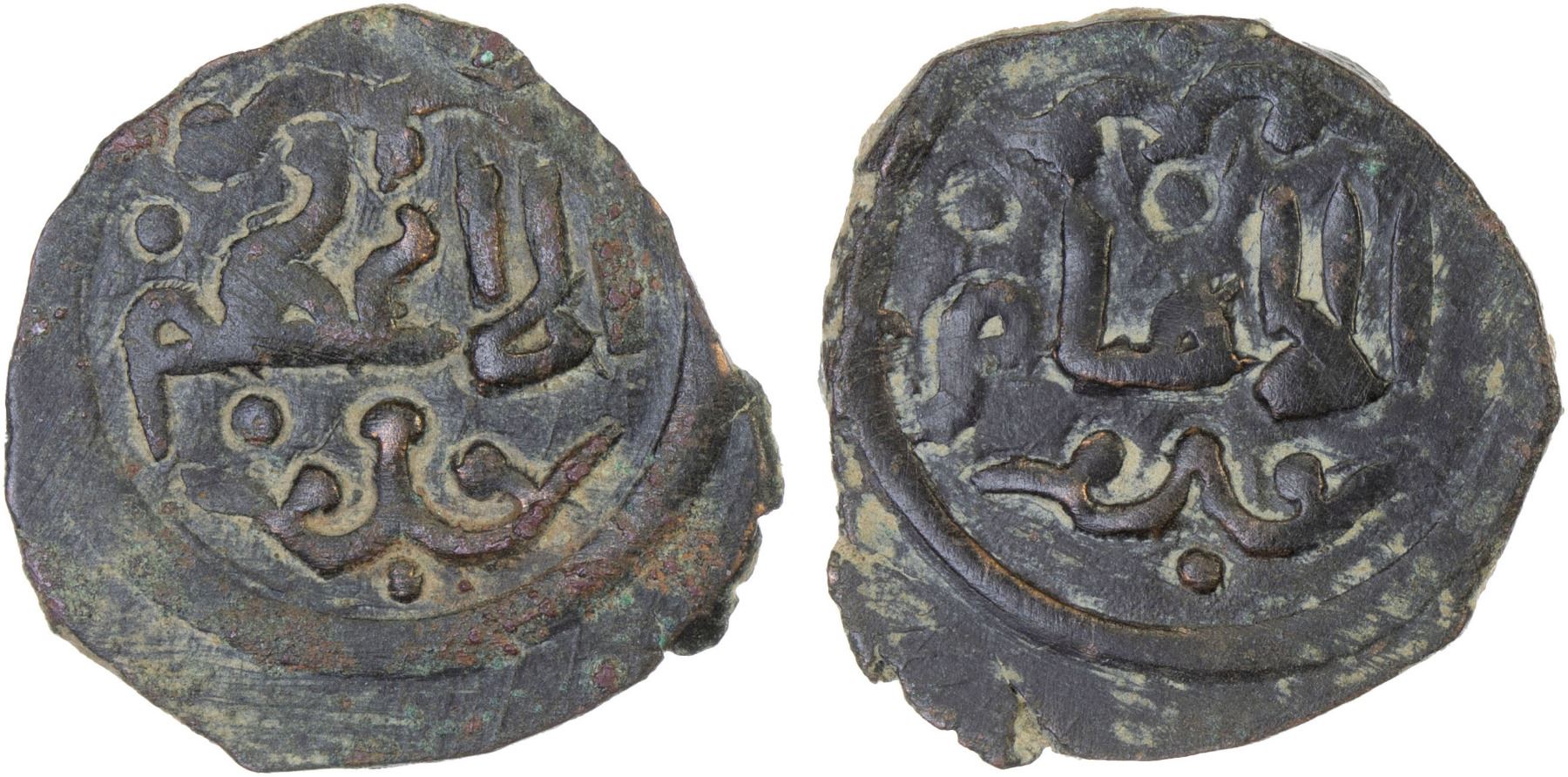 GREAT MONGOLS: Anonymous, ca. 1230s, AE jital (1.65g), NM, ND, A-3747L, al-imam on obverse, al-a'zam on reverse, also assigned to Kaiyaluq mimt; superb quality, XF, RR.