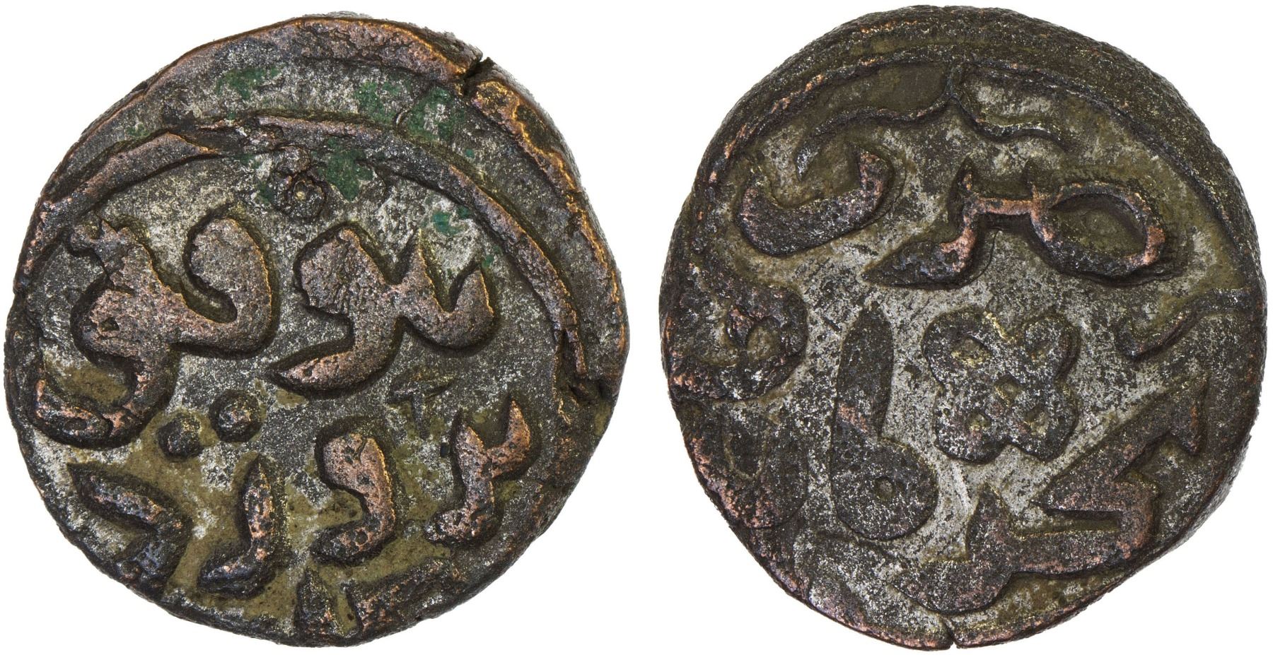 GREAT MONGOLS: Anonymous, ca. 1250s-1260s, AE jital (3.47g), Kurraman, ND, A-3779D, Persian be-tawfiq-e parvardegan on the obverse, mint on the reverse, with some of the original silver-wash, XF-AU, RR.
