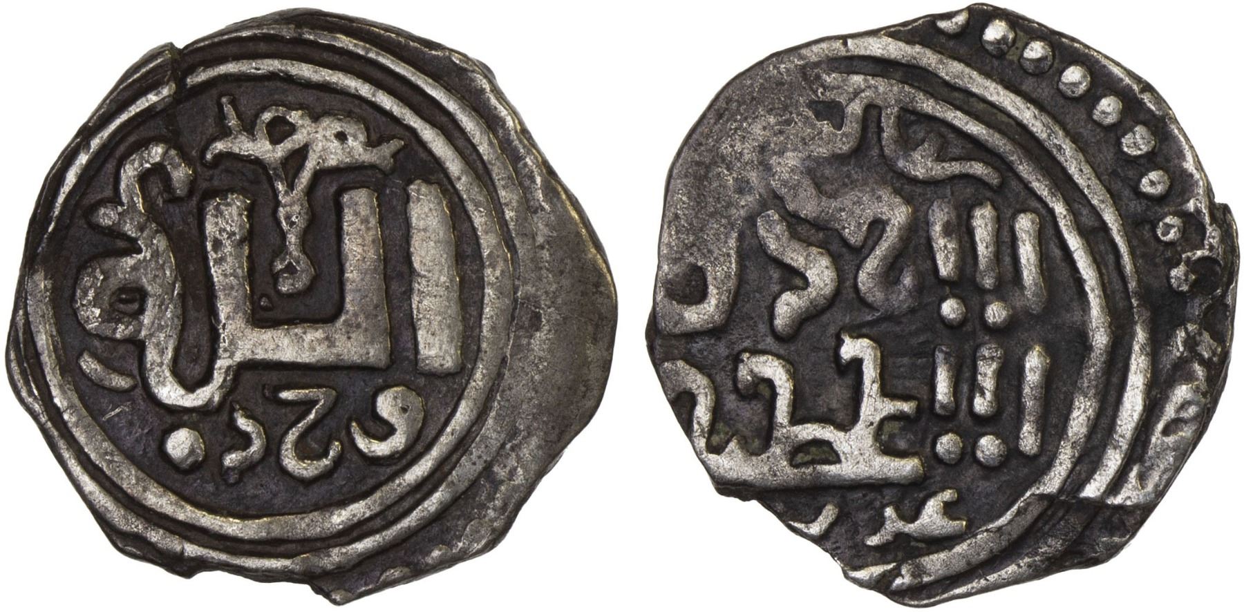 GREAT MONGOLS: Anonymous, ca. 1250s-1260s, AR 1/2 dirham (1.51g), Qara Qorum, ND, A-3754A, Zeno-20618, Allah in obverse center, with wahdahu below, written with separate letters // al-urdu al-a'zam, mint name in Uighur below; nice strike with almost no weakness, VF, RRR. The symbol above the obverse resembled the tamgha of Güyük (1246-1249), but likely struck later.