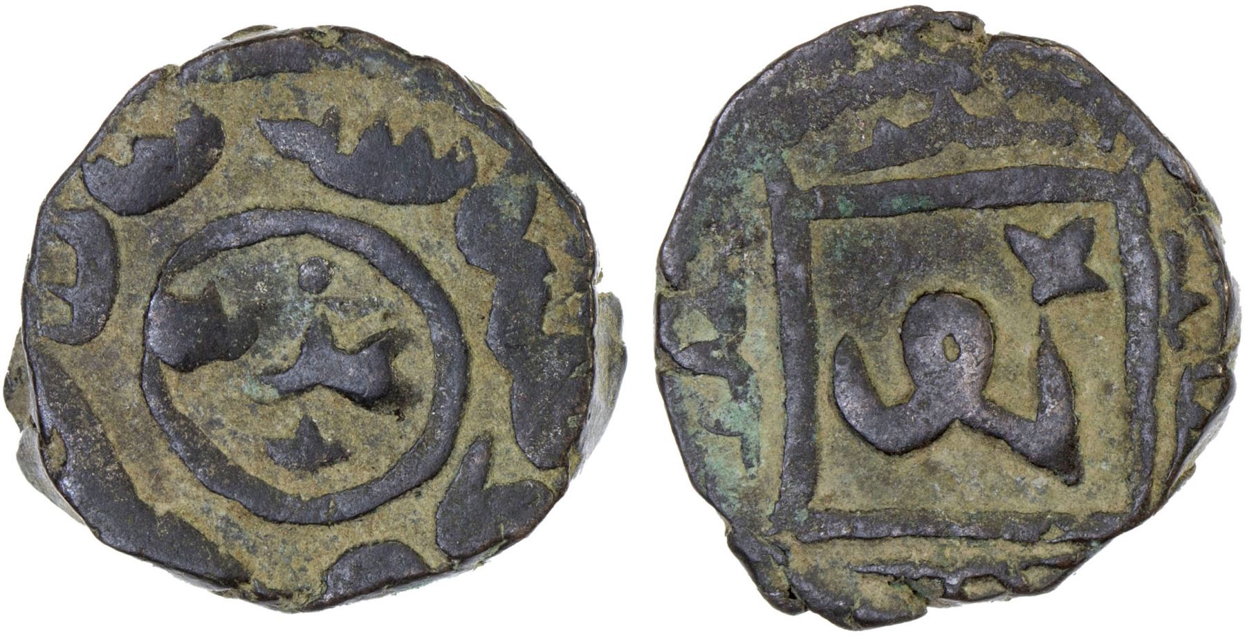 GREAT MONGOLS: Anonymous, ca. 1260, AE jital (3.33g), Ghazna, AH658, A-3771B, clear date in Arabic, mint name in the obverse center, denomination "jou" in the reverse center, VF, R.