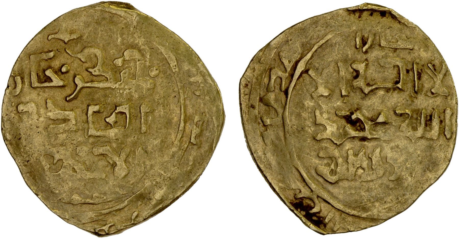 GREAT MONGOLS: Chingiz Khan, 1206-1227, AV dinar (2.87g), Bukhara, ND, A-1964, obverse legend chingiz khan / al-'adil / al-a'zam, full mint name above the reverse field; average strike, VF, R.