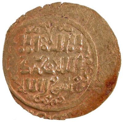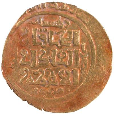 GREAT MONGOLS: Chingiz Khan, 1206-1227, AV dinar (3.09g), Dihistan, ND, A-1965, cf. Zeno-90273, al-khaqan / al-'adil / al-a'zam on obverse, kalima on reverse, nice strike, Extremely Fine, RR, ex. Tony Ettinger collection.  Mint name above obverse, with darb to right and floral ornament to left. Mint name formula, possibly with date (both off-flan), in obverse margin, part of Qur'an 9:33 in reverse margin. Dihistan is an extremely rare mint for the early Great Mongol coinage.