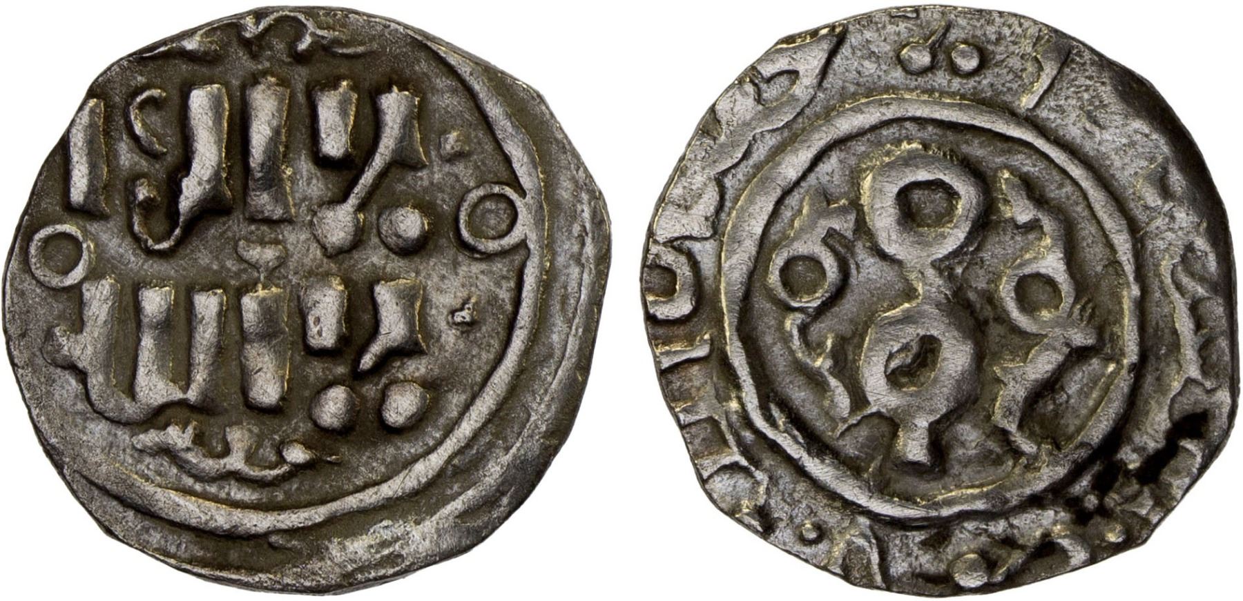 GREAT MONGOLS: Güyük, 1246-1249, AR dirham (1.16g), NM, ND, A-3754K, cf. Nyamaa, p. 51, perhaps struck in Khwarizm; Khooboo Ongi tamgha of Güyük Khan, with traces of undeciphered legend around // Arabic la ilah illa Allah, bold VF, RR.