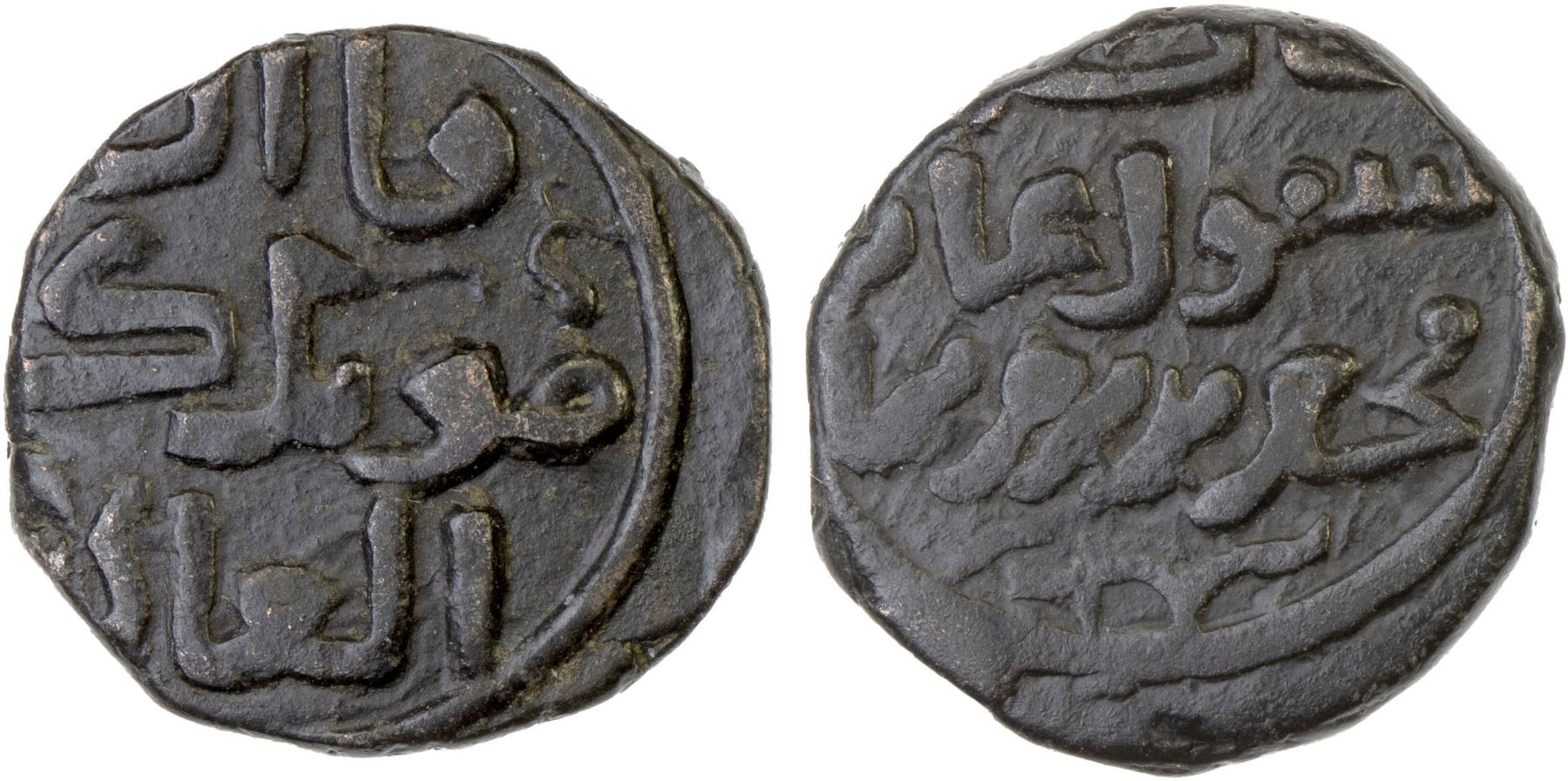 GREAT MONGOLS: Möngke, 1251-1260, AE fals (3.64g), Shafurqan, A-3768 (1978B), month of Muharram followed by uncertain year, possibly intended for AH658 (this type is normally dated AH657), VF, RR.