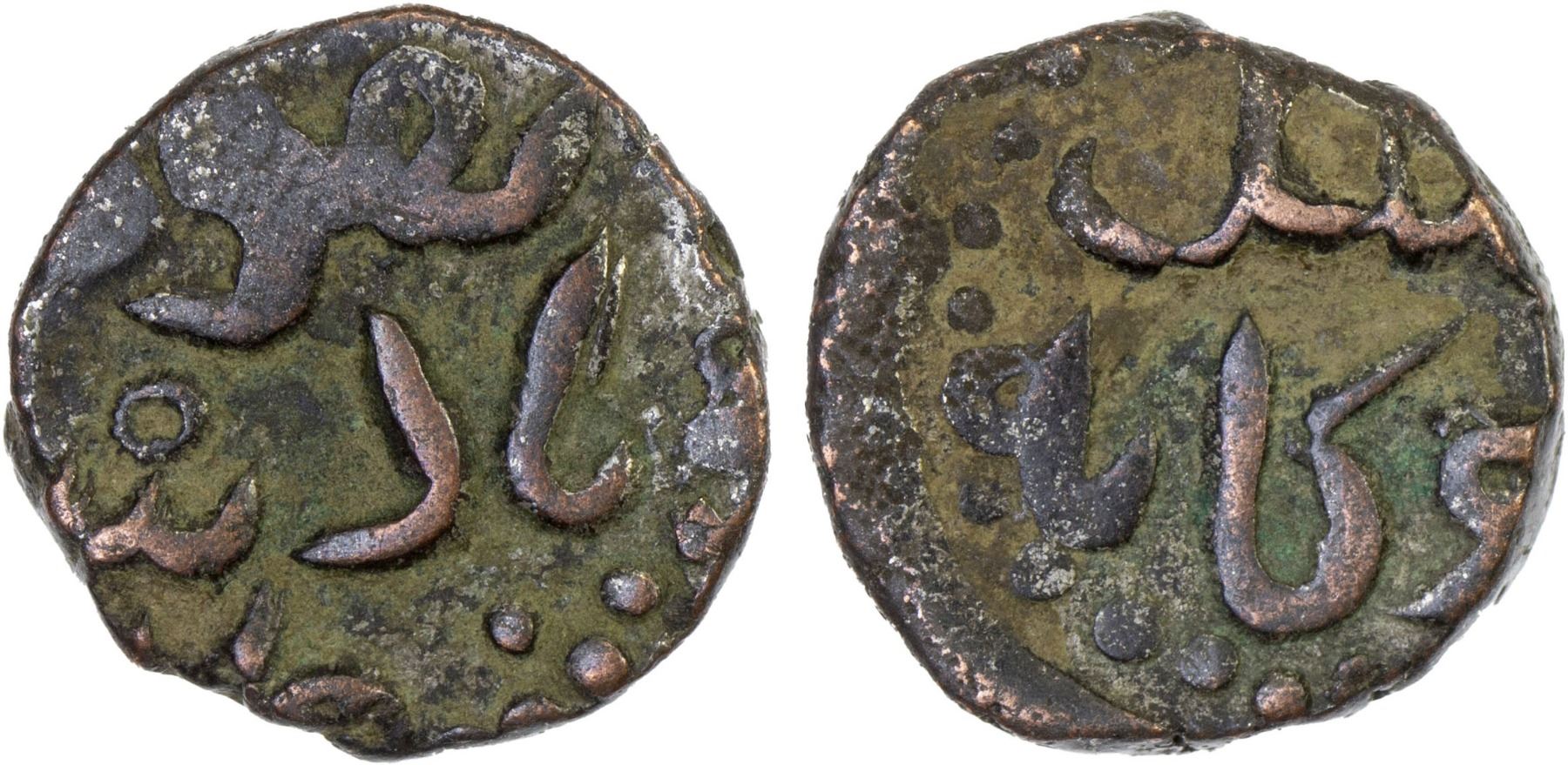 GREAT MONGOLS: Möngke, 1251-1260, AE jital of 2 gani (3.78g), A-3779T, cf. Zeno-309728 for long discussion, legends be-qovvat-e padshah-i jahân // jital dû gâneh ("two gani"), one of very few coins that actually call itself jital! strong VF, RR.