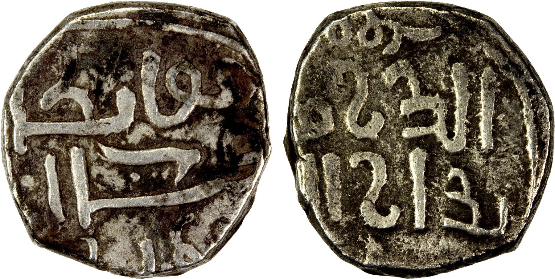 GREAT MONGOLS: Möngke, 1251-1260, AR dirham (2.95g) (Herat), ND, A-A1978, legend möngkâ qa'an al-'adil on the obverse, mint formula on reverse but with the mint name off flan, VF, RR.