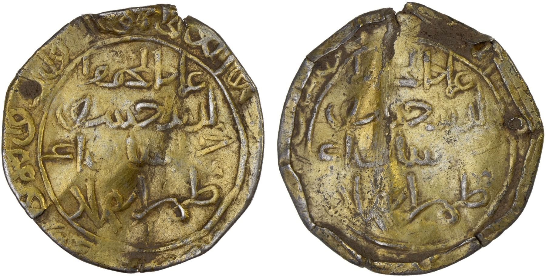 GREAT MONGOLS or later: Anonymous, 12th/15th century, AR/AU burial token (1.21g), A-3852, poorly engraved religious phrases, same type on both sides, die-struck, uneven surfaces, crude VF, RR.
