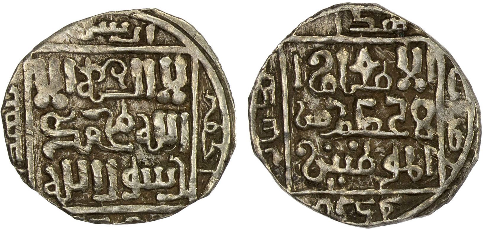 GREAT MONGOLS: temp. Chingiz Khan, 1206-1227, AR 1/2 dirham (1.29g), Urdu, ND, A-A-3707A, Zeno (see Zeno-122260 for the full dirham dated AH620), kalima // citing the caliph al-Nasir li-din Allah with the mint formula in the margin; same style as the full dirham A-3707 which is always dated AH620; unpublished and probably unique, choice VF-XF, RRR.