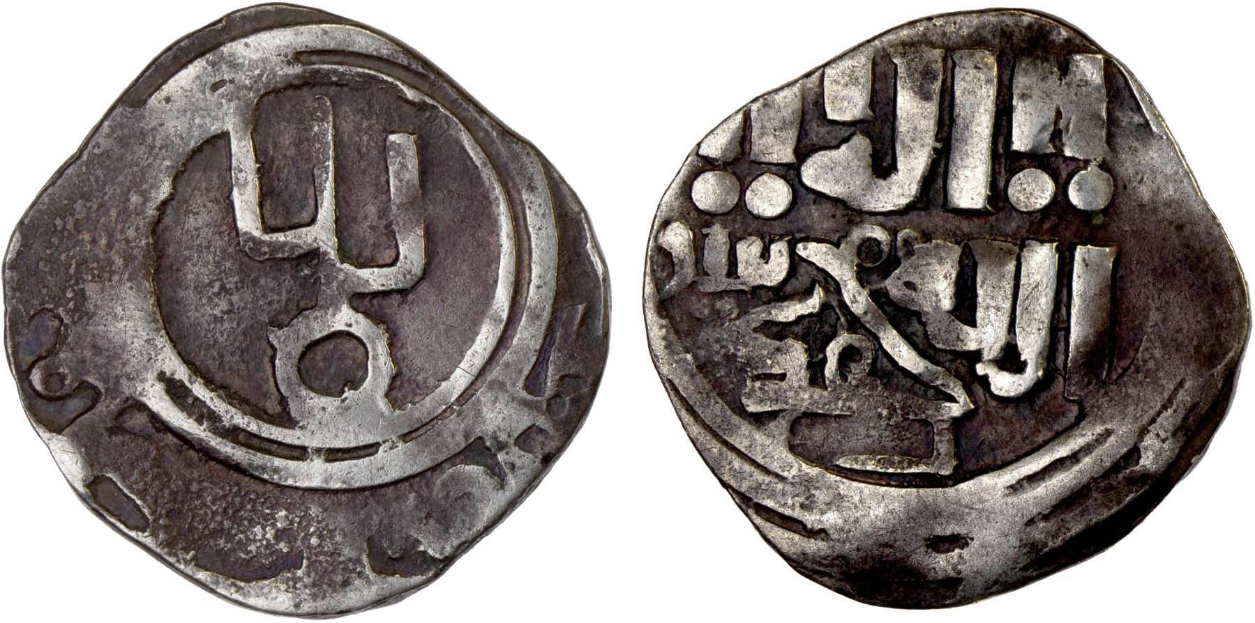 GREAT MONGOLS: temp. Güyük, 1246-1249, AR dirham (2.18g), AH(644), A-3797 (O1979), cf. Zeno-5554 (probably same dies), struck at either Imil or Qabaq, both in Xinjiang, China, probably Imil by style, crude VF, RR. Qabaq is the provincial name, Imil its principle city.