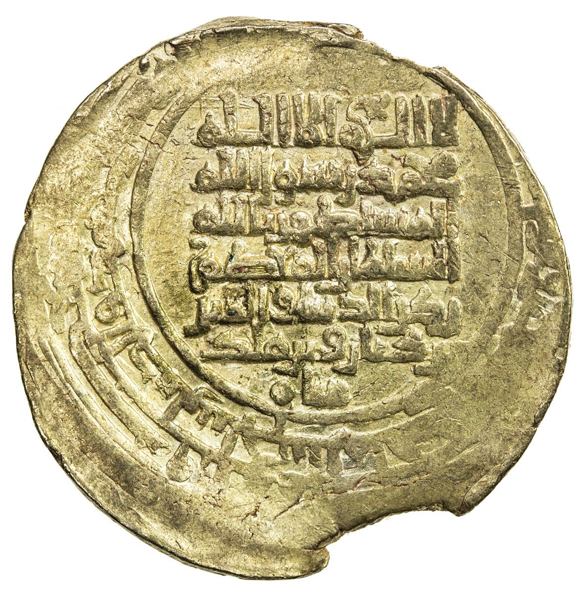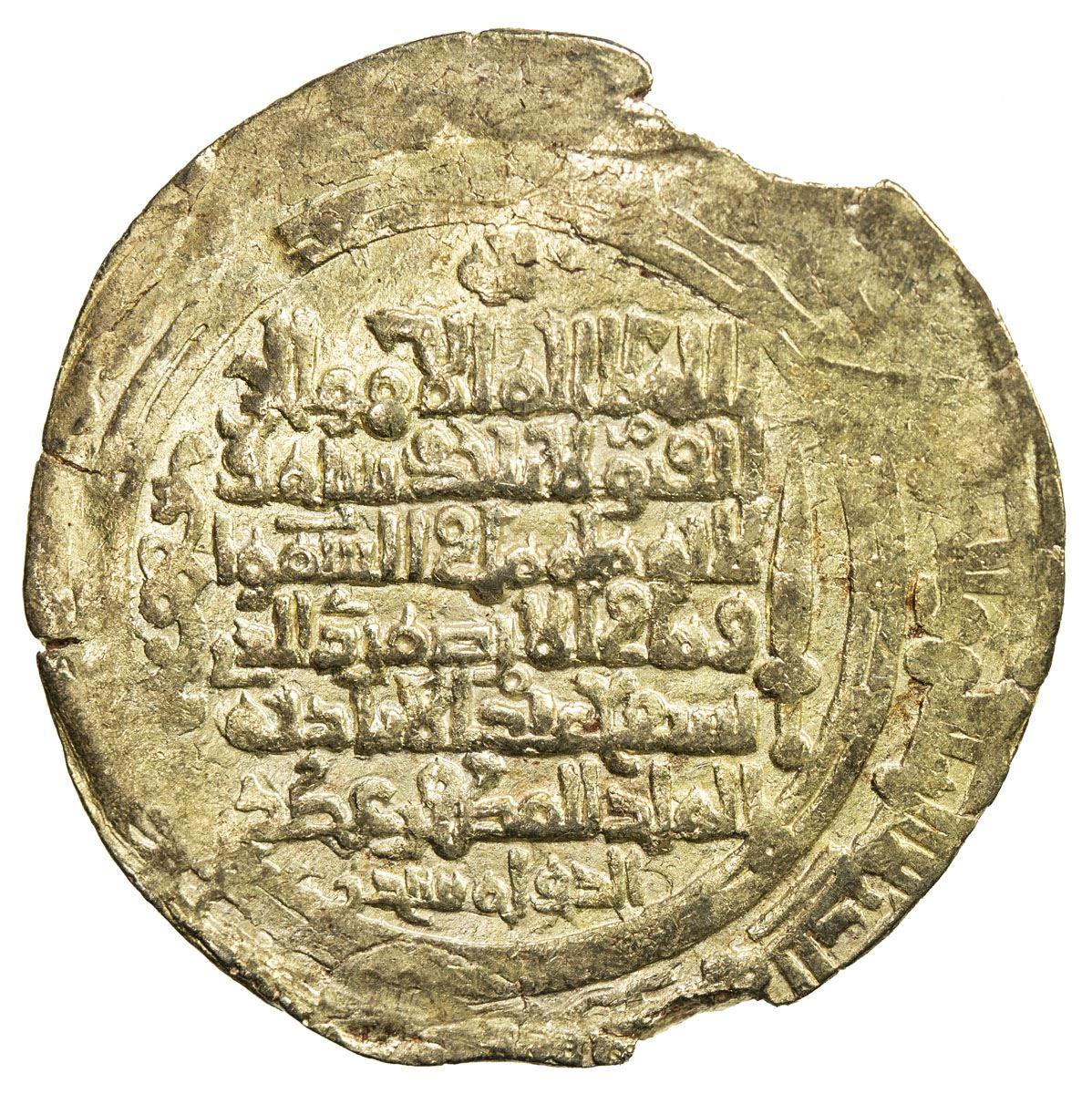 GREAT SELJUQ: Sanjar, 1097-1098, pale AV dinar (4.69g), Balkh, AH(49)1, A-1684A, citing Barkiyaruq as overlord, clear mint & date, with Ayat al-Kursi (Qur 'an Sura 2:255), bold strike for this type, VF-EF, RR.