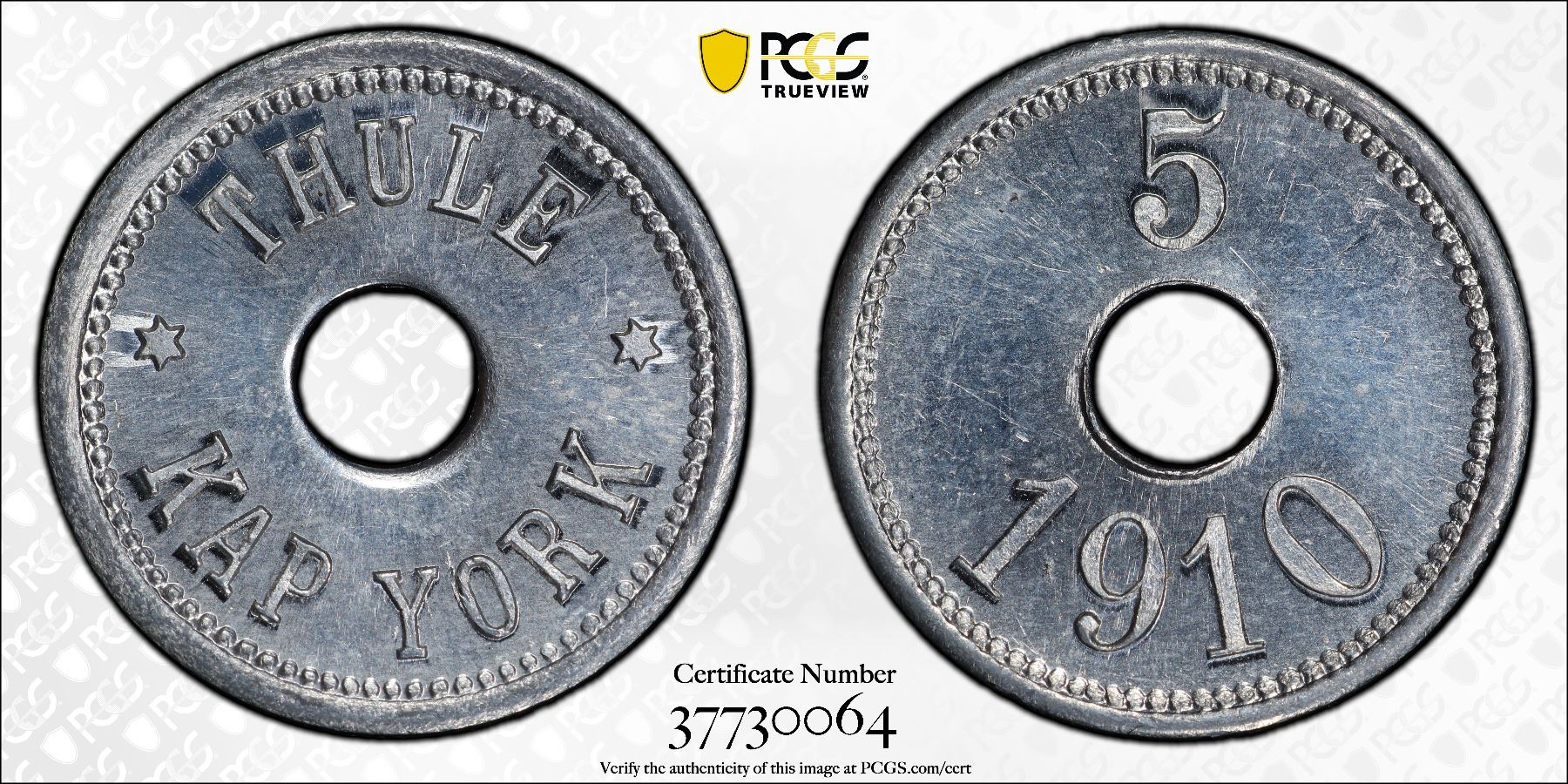 GREENLAND: Thule-Kap York, 5 øre token, 1910, PCGS MS66