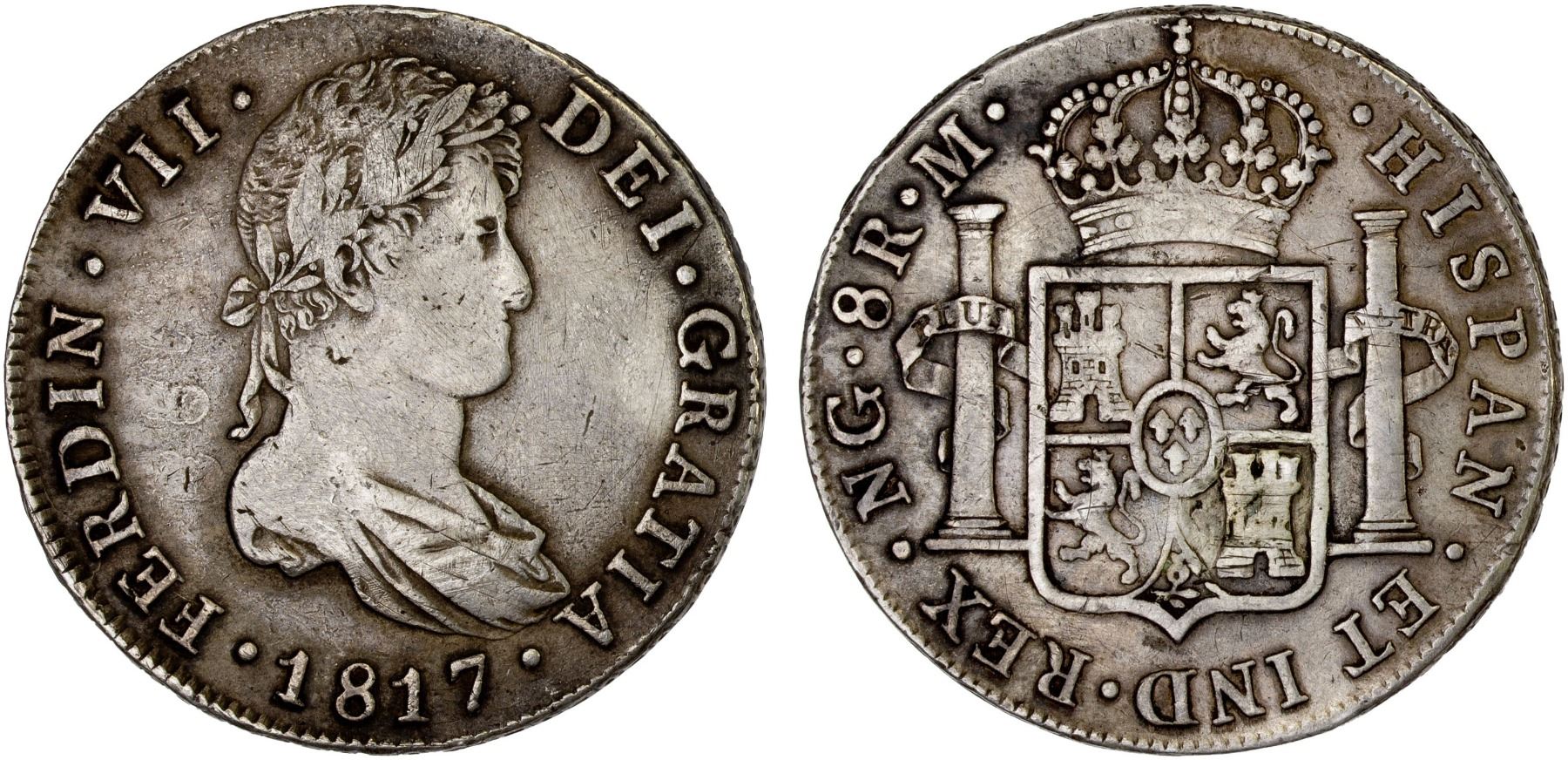GUATEMALA: Fernando VII, 1808-1821, AR 8 reales, 1817-NG, KM-69, assayer M, possible traces of old museum number in left obverse field, VF.