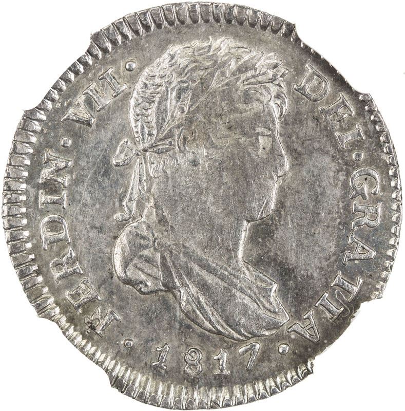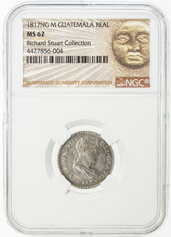 GUATEMALA: Fernando VII, 1808-1821, AR real, 1817-NG, KM-66, Cr-69, assayer M, attractively toned, NGC graded MS62, ex Richard Stuart Collection.