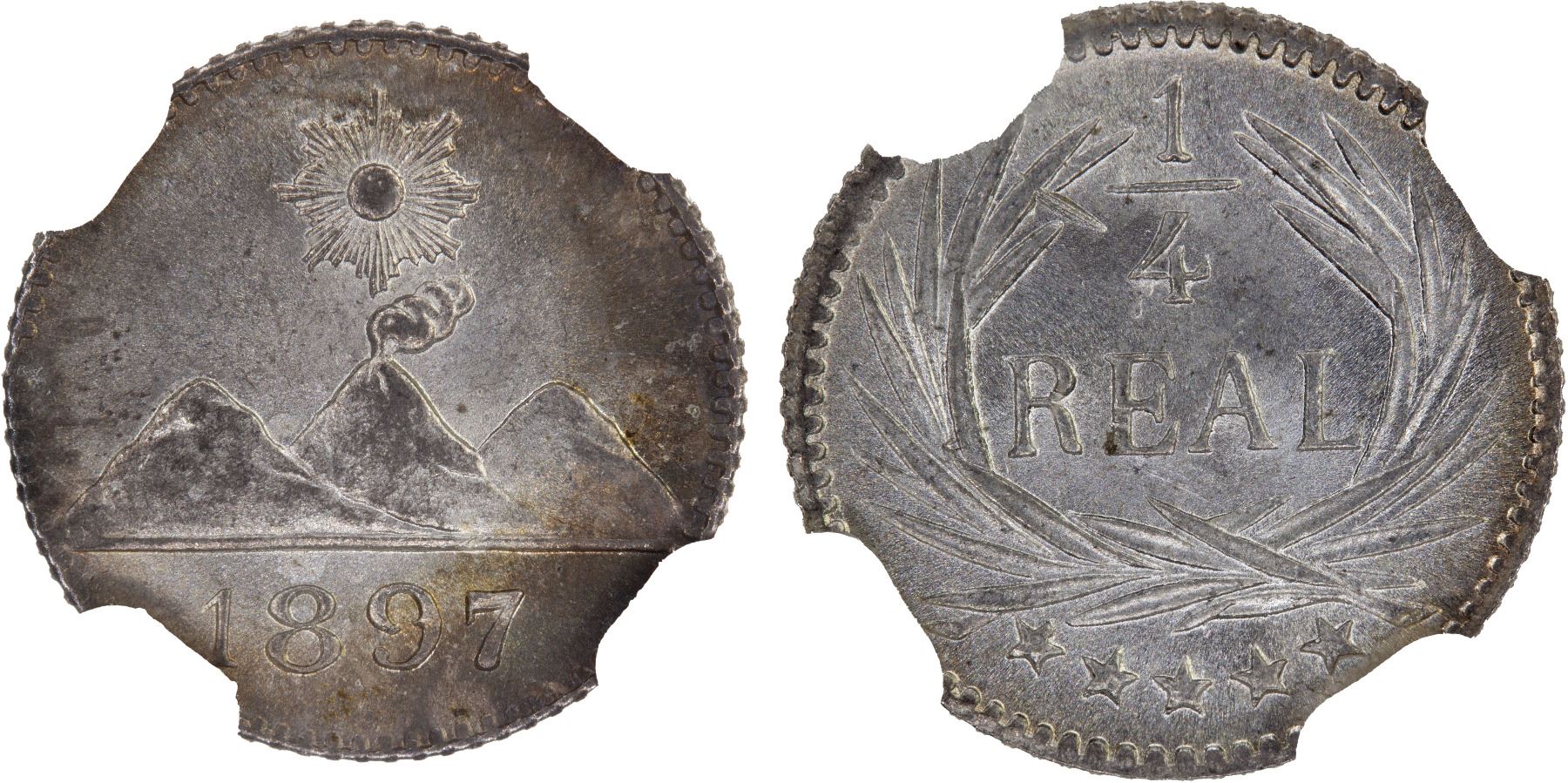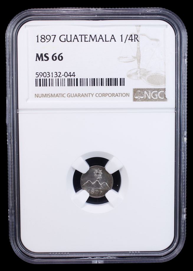 GUATEMALA: Republic, AR 1/4 real, 1897, NGC MS66