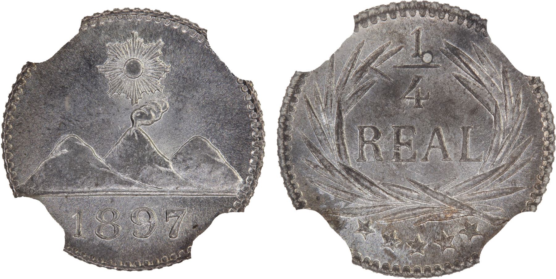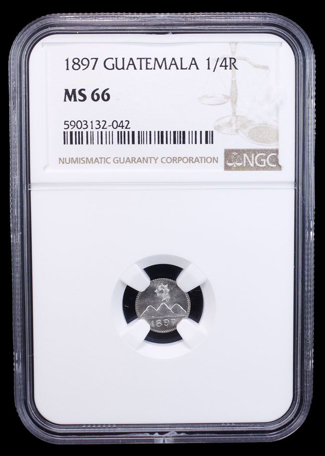GUATEMALA: Republic, AR 1/4 real, 1897, NGC MS66