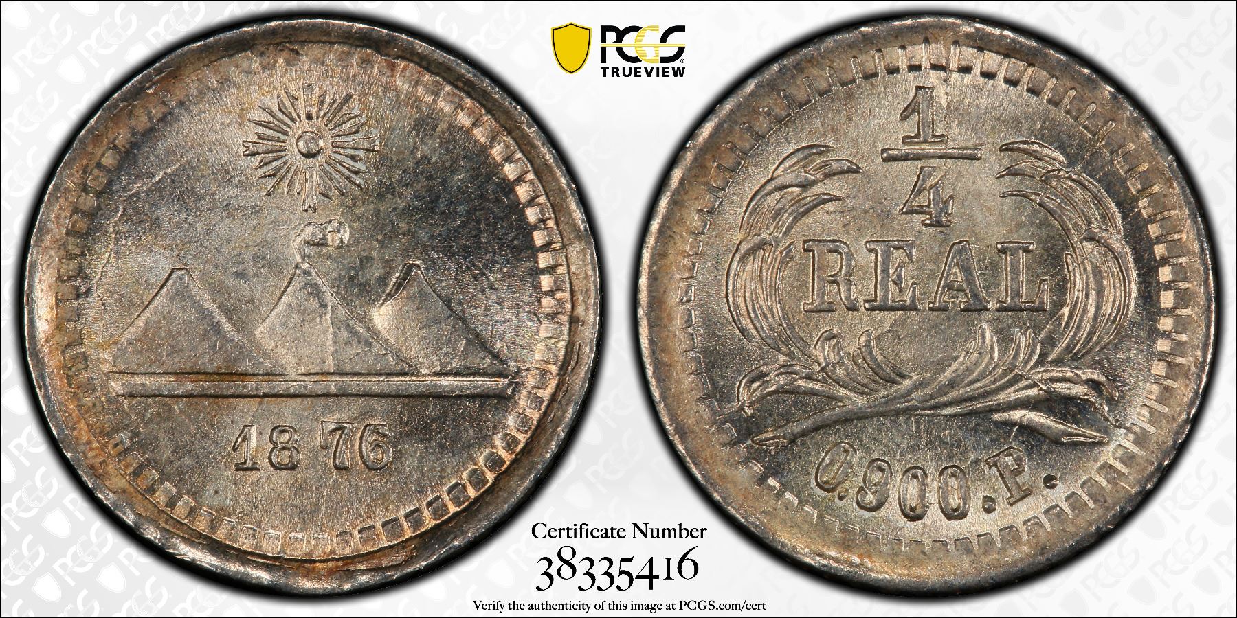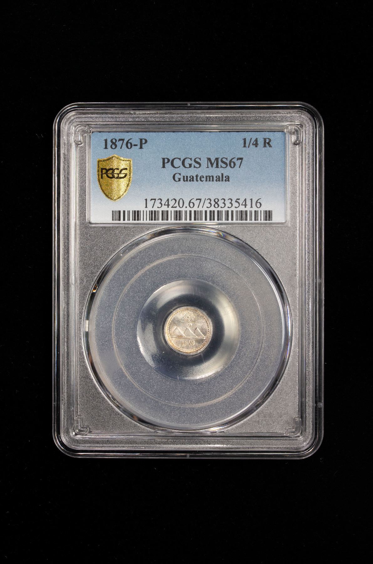 GUATEMALA: Republic, AR 1/4 real (quartilla), 1876, KM-146, assayer P, a superb quality example! PCGS graded MS67.