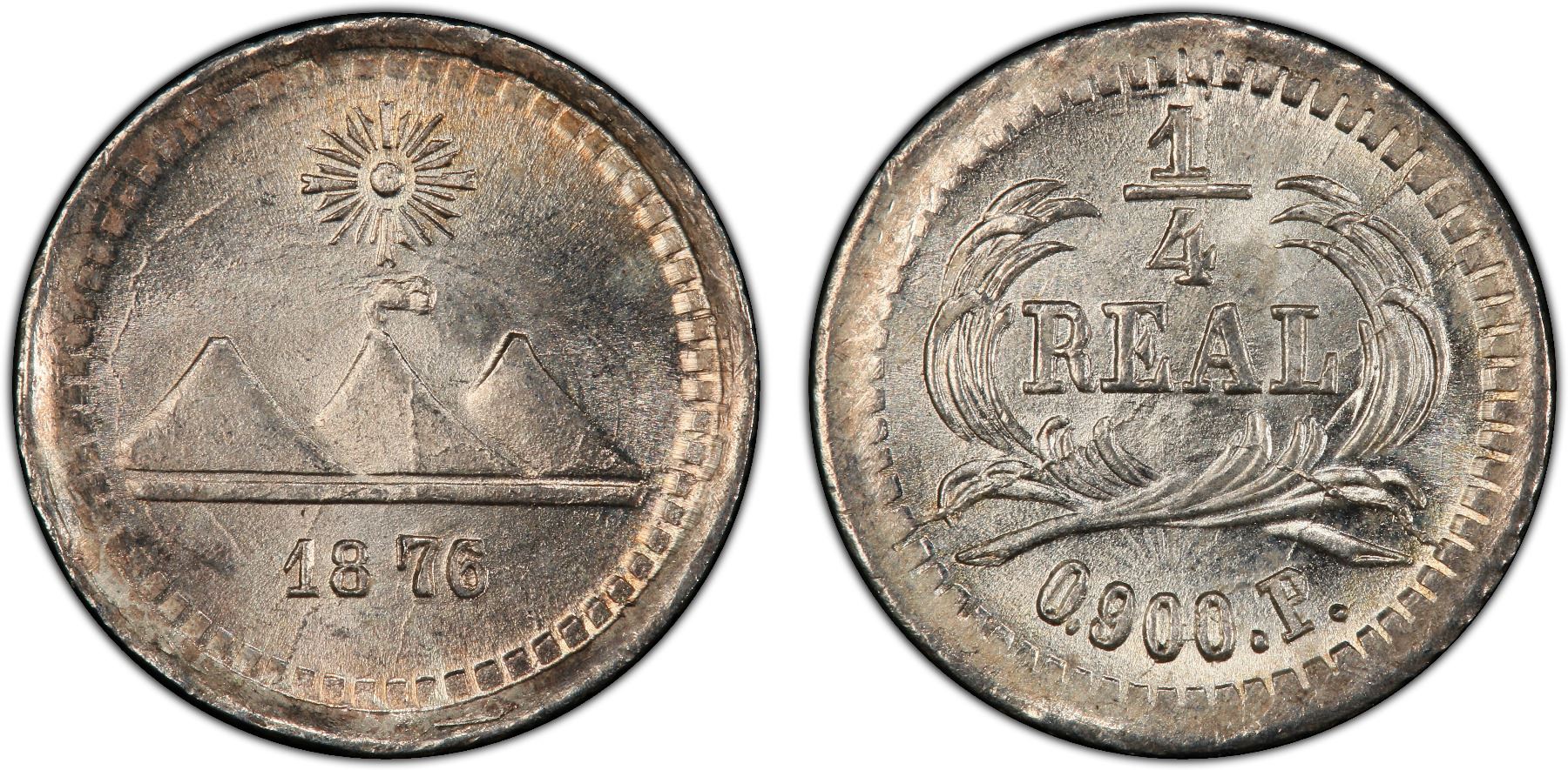 GUATEMALA: Republic, AR ¼ real, 1876, PCGS MS67