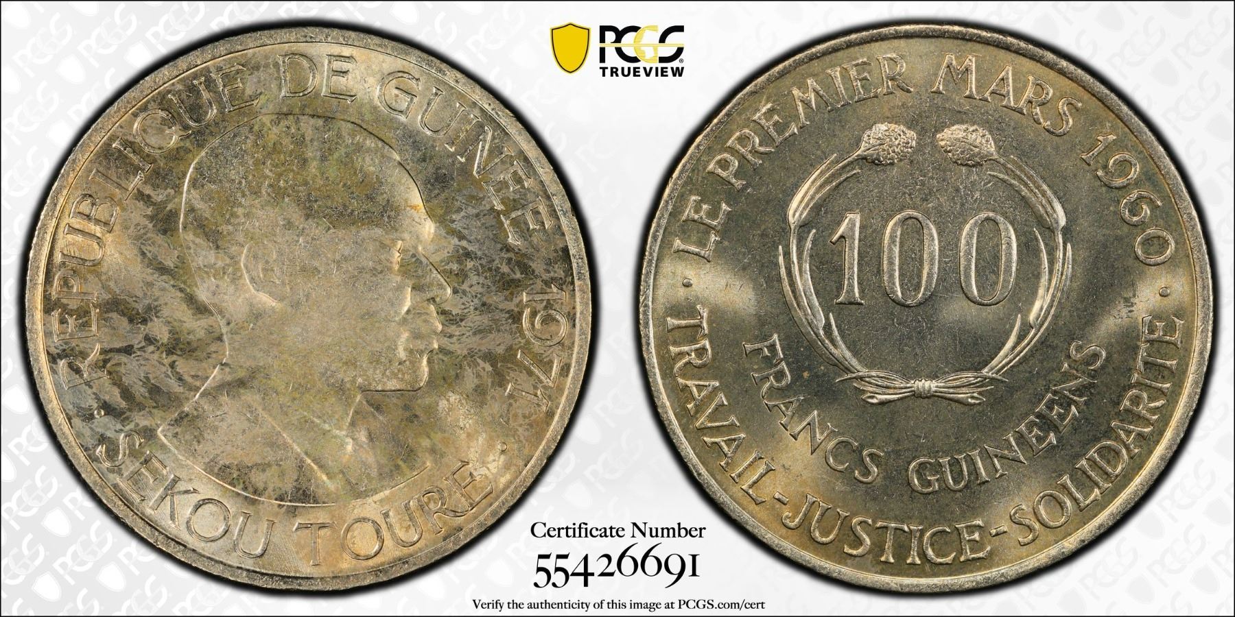 GUINEA: Republic, 100 francs guinéens, 1971, PCGS MS63