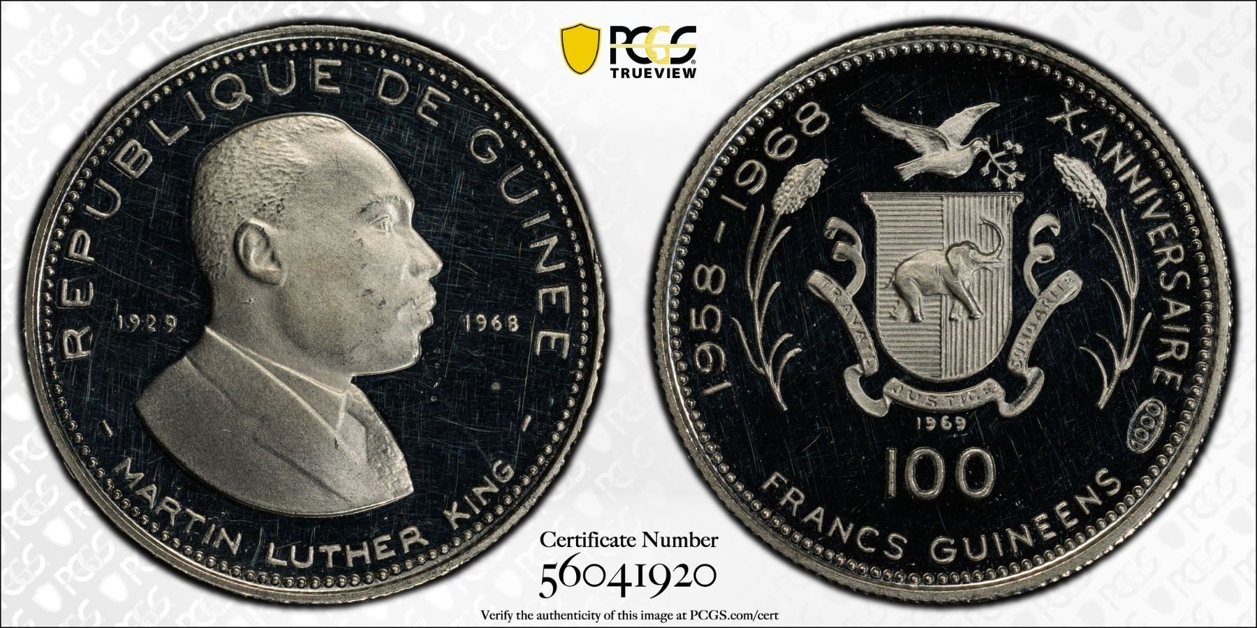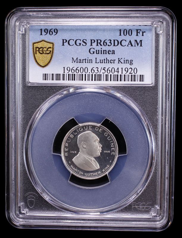 GUINEA: Republic, AR 200 francs guinéens, 1969, KM-9, Martin Luther King commemorative issue, a lovely example, PCGS graded PF63 Deep Cameo.