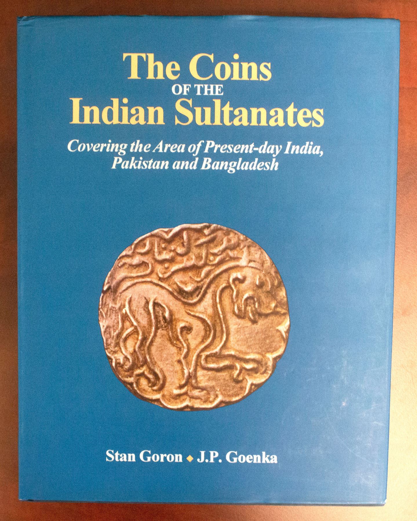 Goron, Stan & Goenka, J.P., Coins of the Indian Sultanates, Munshiram Manoharlal Publishers Pvt. Ltd., New Delhi, 2001, 564 pages with photos throughout, hardcover with dust jacket. An extensive and incredibly well-produced catalouge of the Arab Governors of Sind, Amirs of Sind, Amirs of Multan, Ghaznavids, Sultans of Dehli, Sultans of Bengal, Madura, Bahmani Sultans and their precursors, 'Adil Shahs of Bijapur, Barid Shahs of Bidar, Nizam Shahs of Ahmadnagar, Qutb Shahs of Golkonda, Sultans of Jaunpur, Kalpi, Gujarat, Khandesh, Kashmir, Sind and the Punjab. There is good introductory information, each type is photographed, and the legends are described. Legends are written out in Arabic in the coin descriptions, but can generally be found elsewhere. Printed on good heavy paper. A wonderful production that generally makes Rajgor's catalogue obsolete.