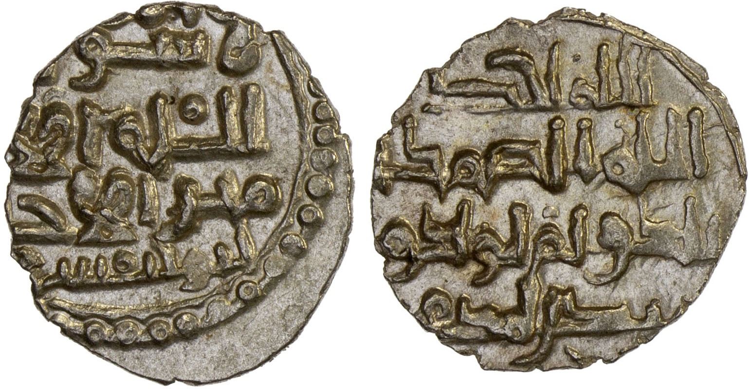 HABBARID OF SIND: Ghaznavid Mahmud, ca. 1010-1030, AR damma (0.51g), NM, ND, A-M4562, FT-UG2, ruler cited as al-amir al-ajall abu'l-qasim with abu'l-qasim iin the bottom line // Qur'an sura 112; Unc, R.