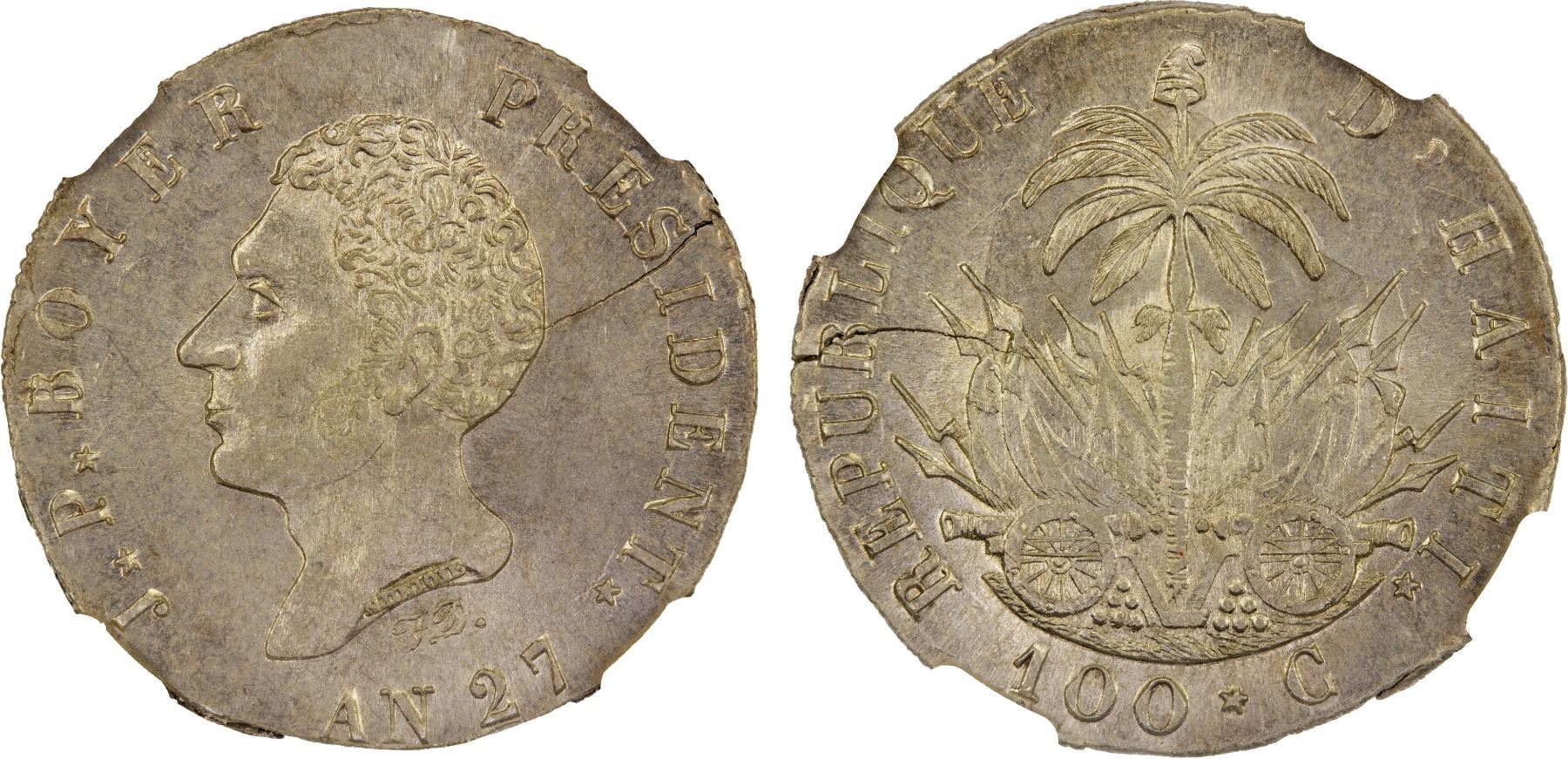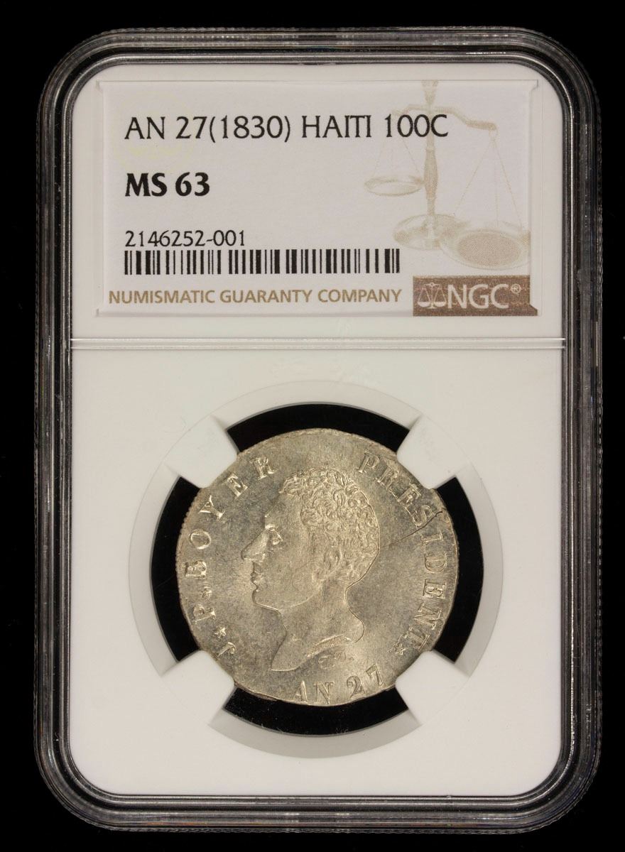 HAITI: Republic, 1825-1849, AR 100 centimes, 1830/AN 27, NGC MS63