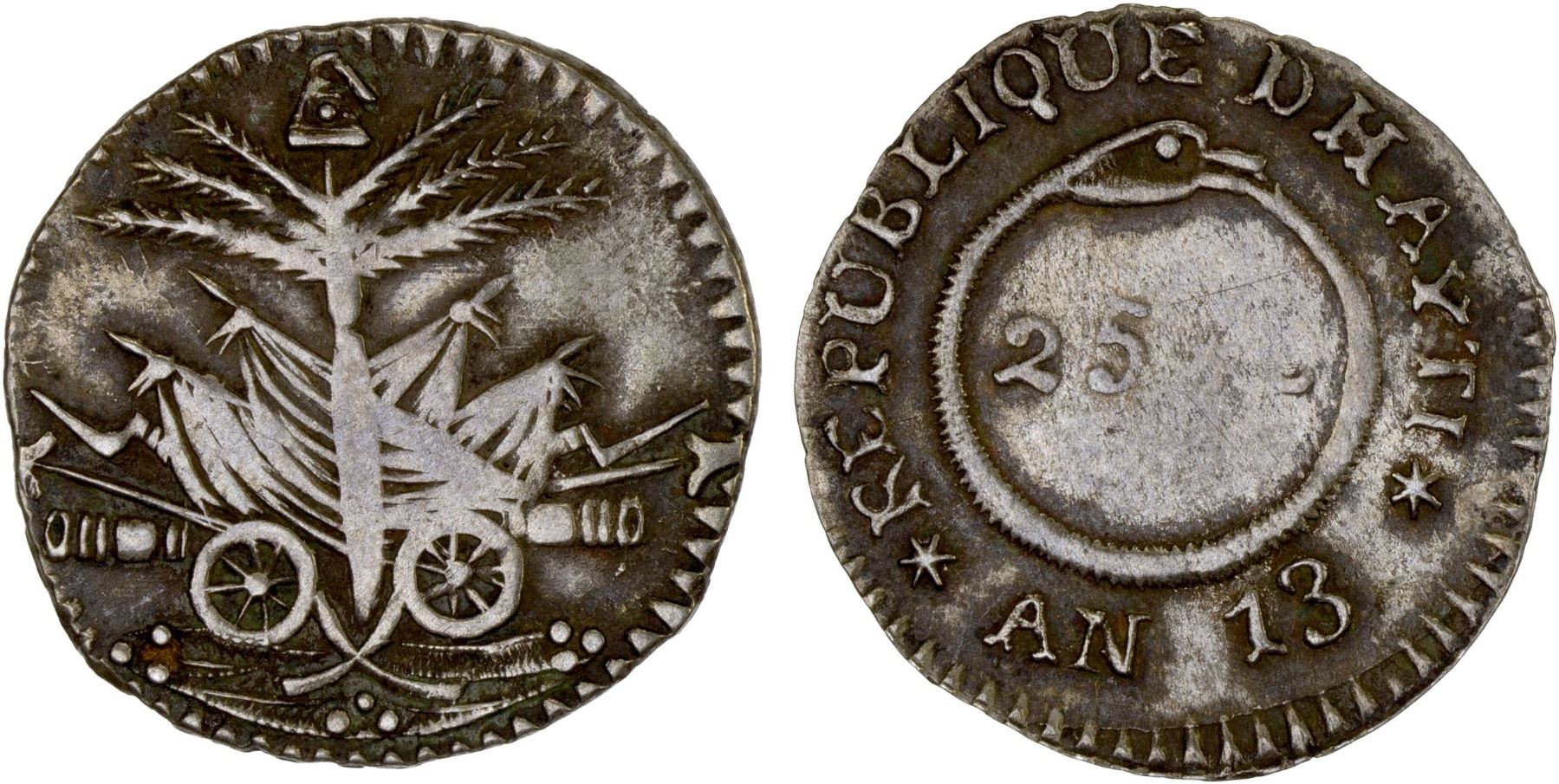 HAITI: Western Republic, AR 25 centimes, AN 13 (1816), KM-12.2, some uneven toning, VF.