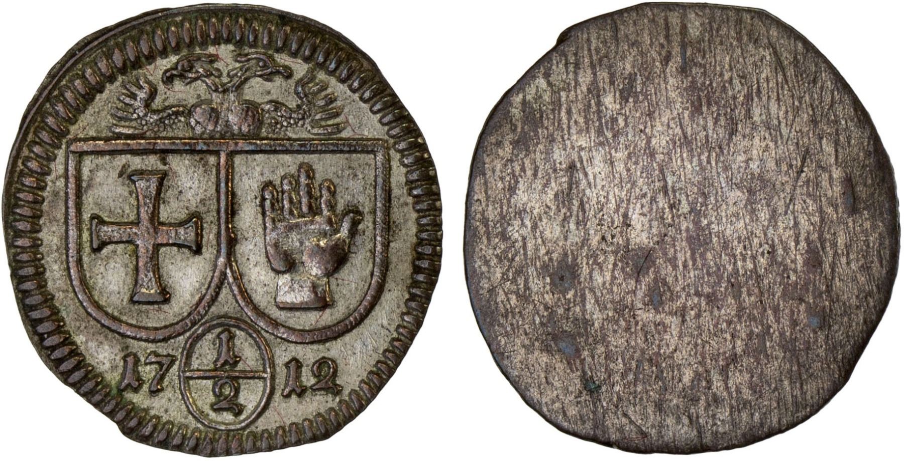 HALL IN SWABIA: Free Imperial City, AR 1/2 kreuzer, 1712, KM-15, Rafff-55, uniface issue, AU.