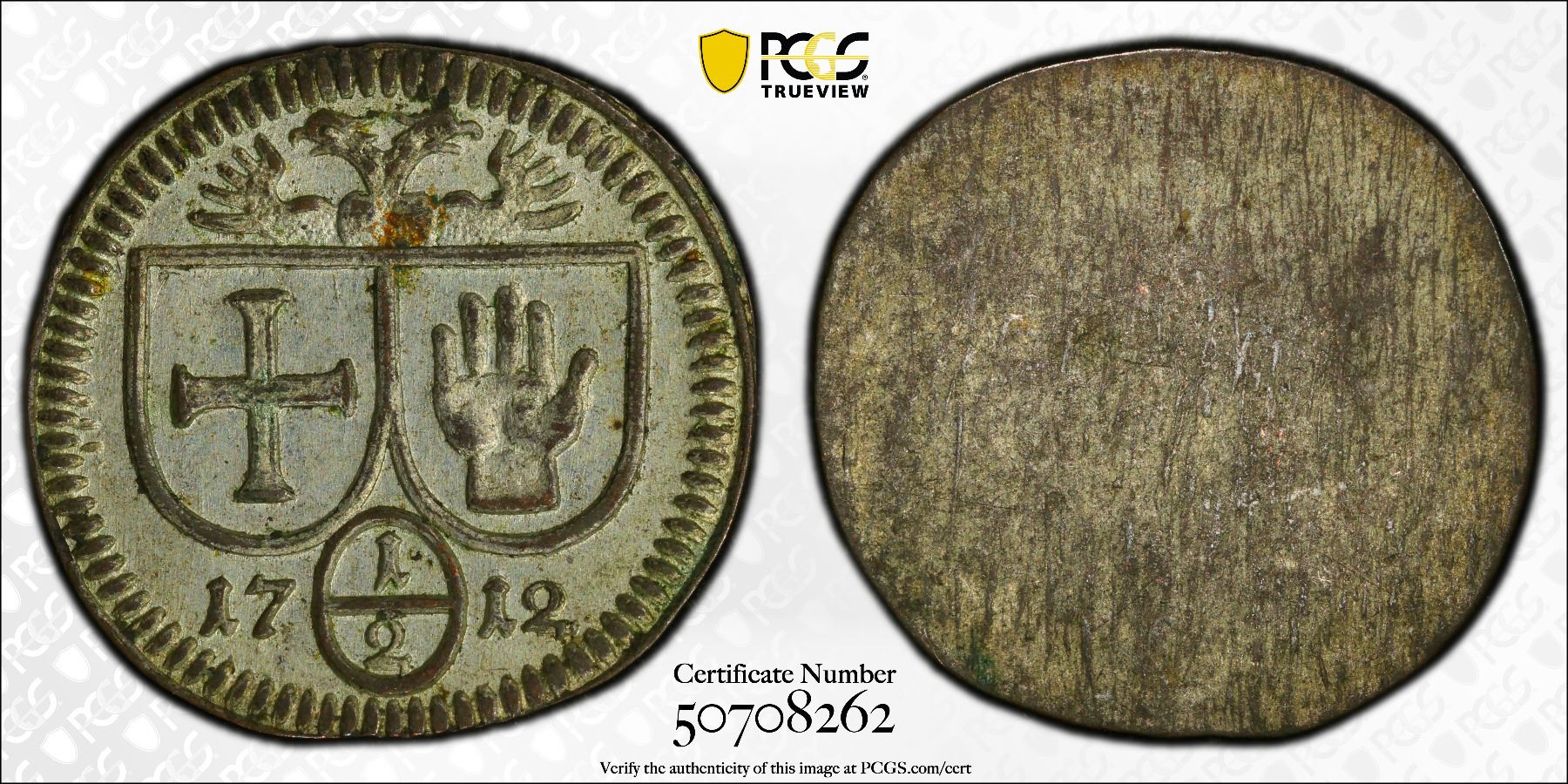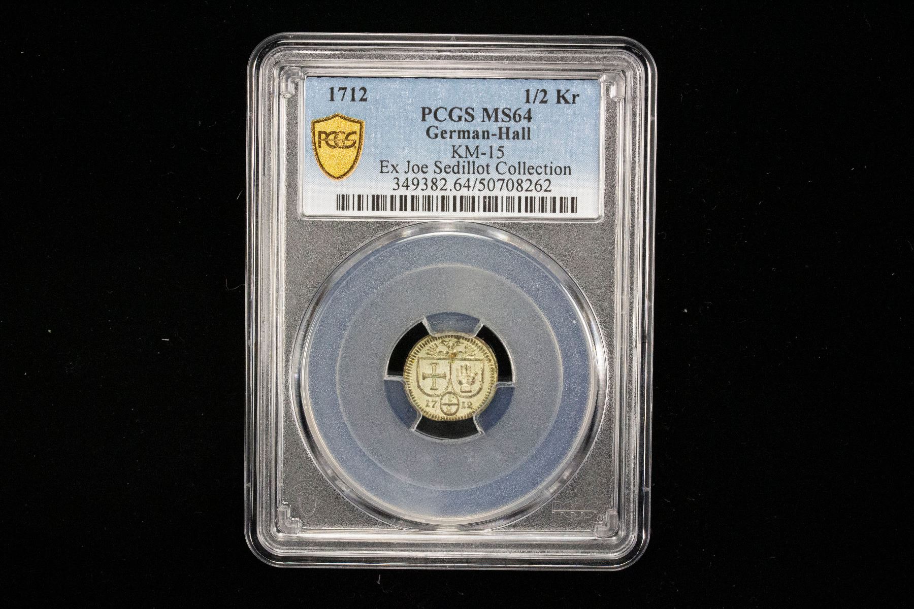 HALL IN SWABIA: Free Imperial City, AR 1/2 kreuzer, 1712, KM-15, uniface issue, a wonderful mint state example! PCGS graded MS64, ex Joe Sedillot Collection.