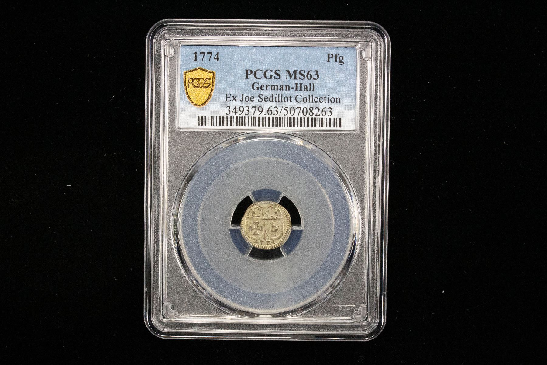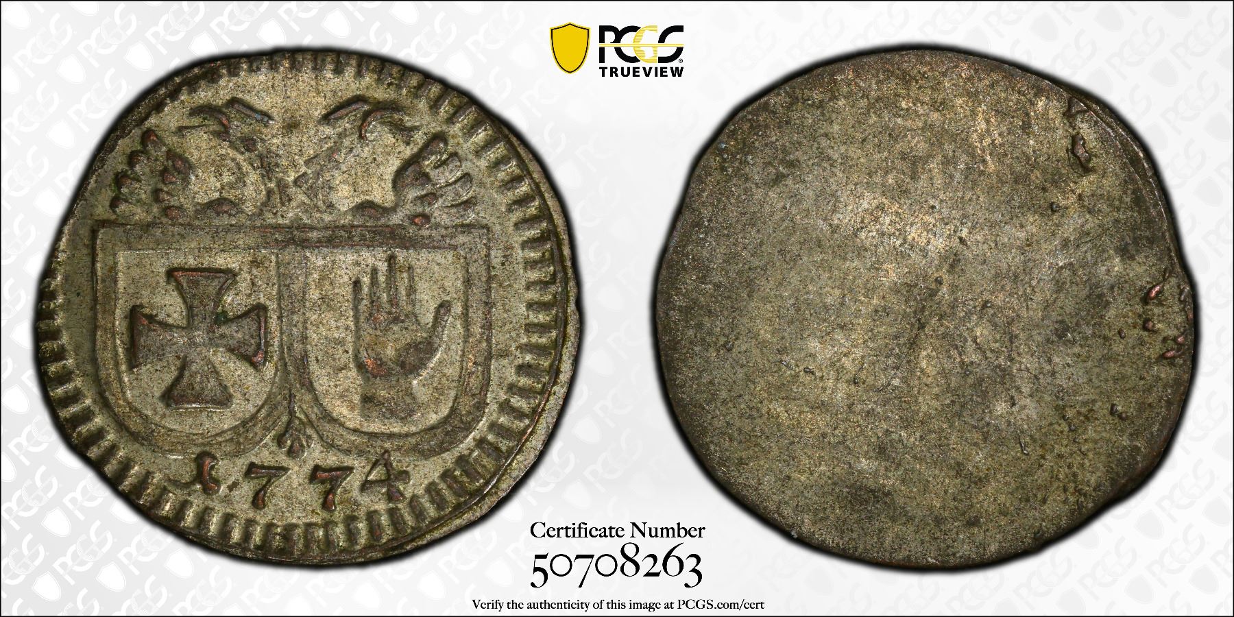 HALL IN SWABIA: Free Imperial City, AR pfennig, 1774, KM-43, uniface issue, a lovely mint state example! PCGS graded MS63, ex Joe Sedillot Collection.