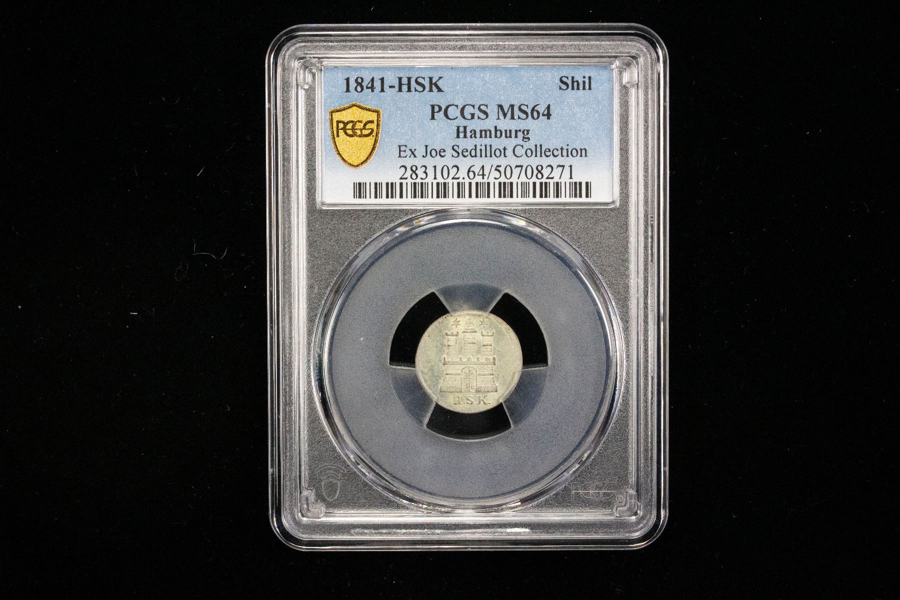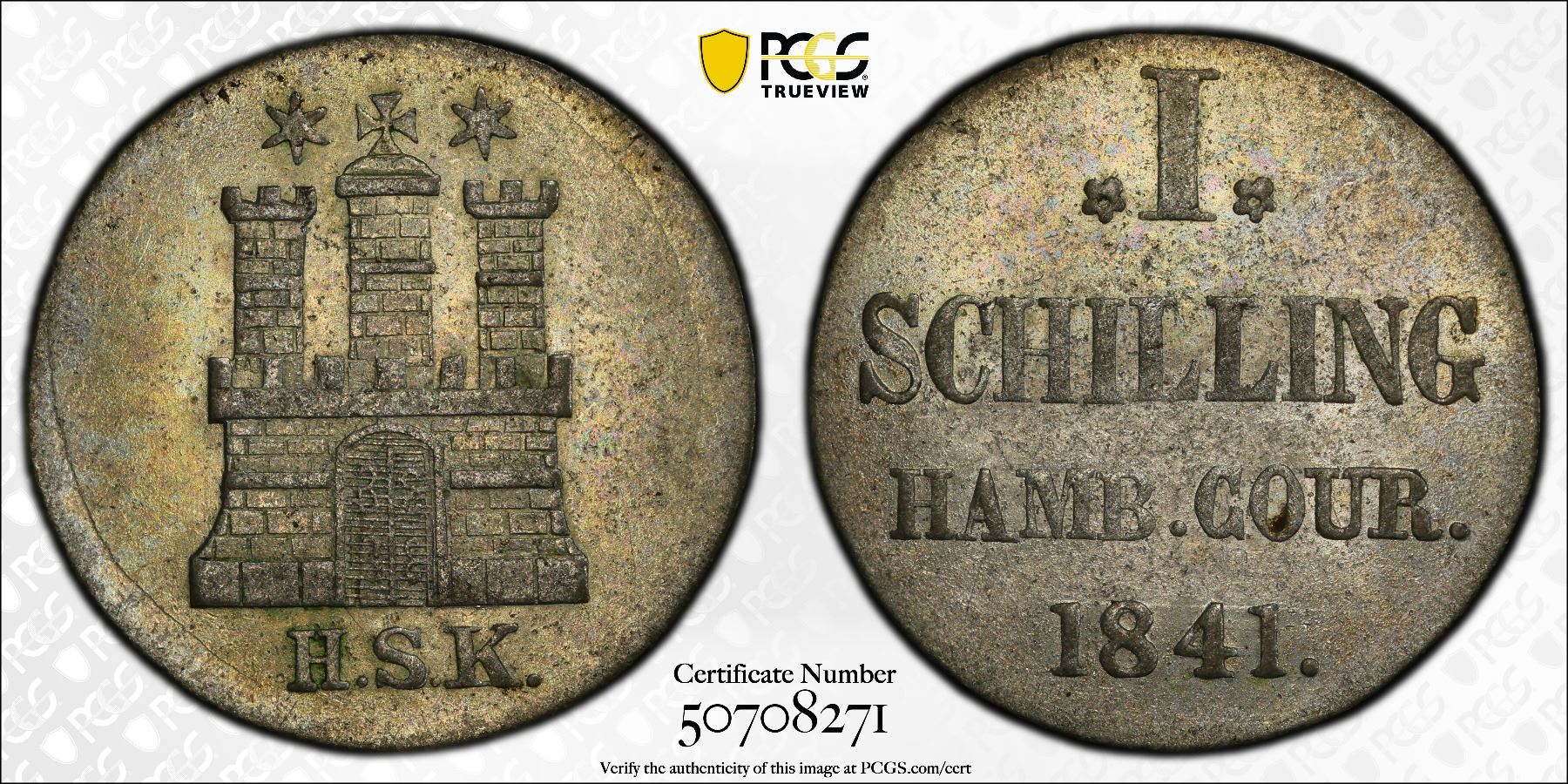 HAMBURG: Free Hanseatic City, AR schilling, 1841, KM-558, Cr-6a.3, mint master initials HSK, a wonderful mint state example! PCGS graded MS64, ex Joe Sedillot Collection.