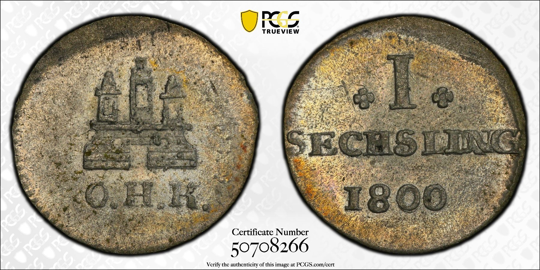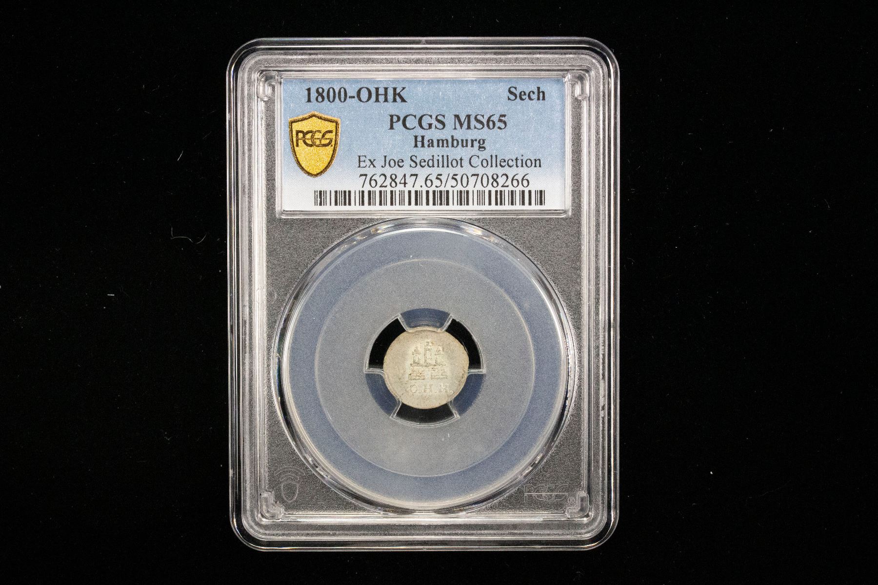 HAMBURG: Free Hanseatic City, AR sechsling, 1800, KM-454, Cr-3a, mint master initials OHK, a superb mint state example! PCGS graded MS65, ex Joe Sedillot Collection.