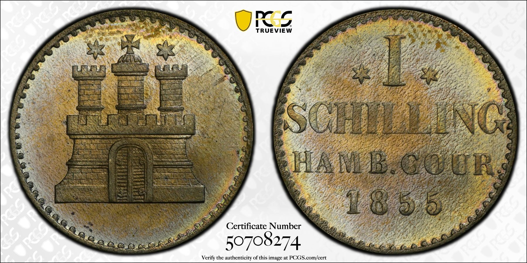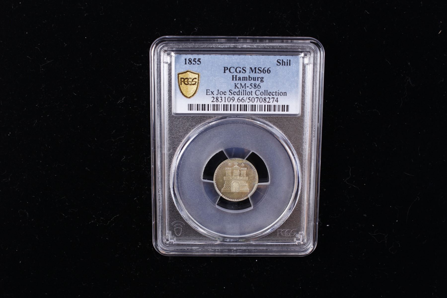 HAMBURG: Free Hanseatic City, AR sechsling, 1855, KM-586, Cr-6a.7, a fantastic mint state example! PCGS graded MS66, ex Joe Sedillot Collection.