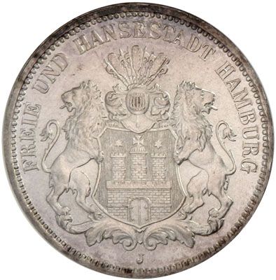 HAMBURG: Freie und Hansestadt, AR 3 mark, 1912-J, Y-58, a lovely specimen, NGC graded MS64.
