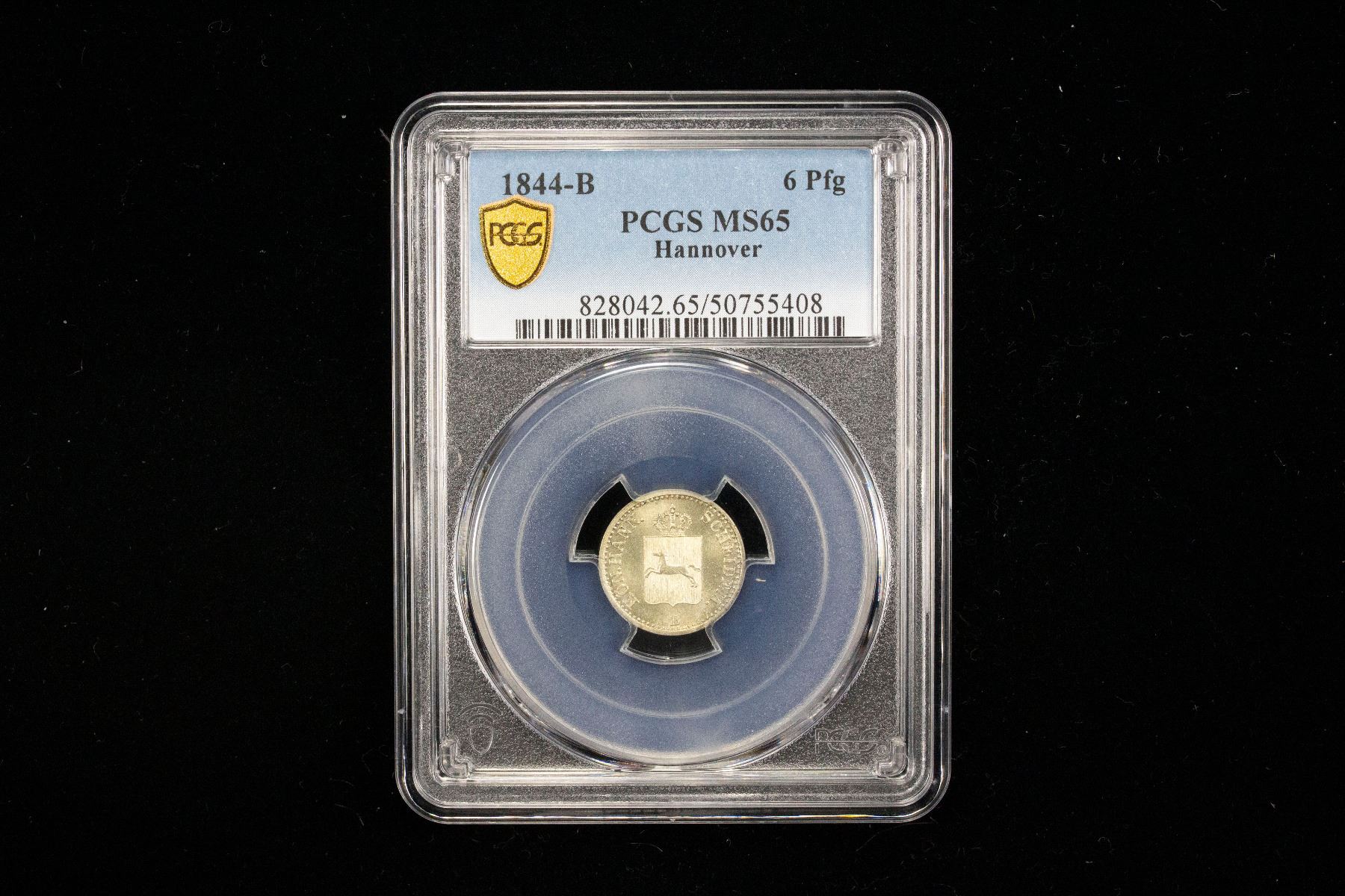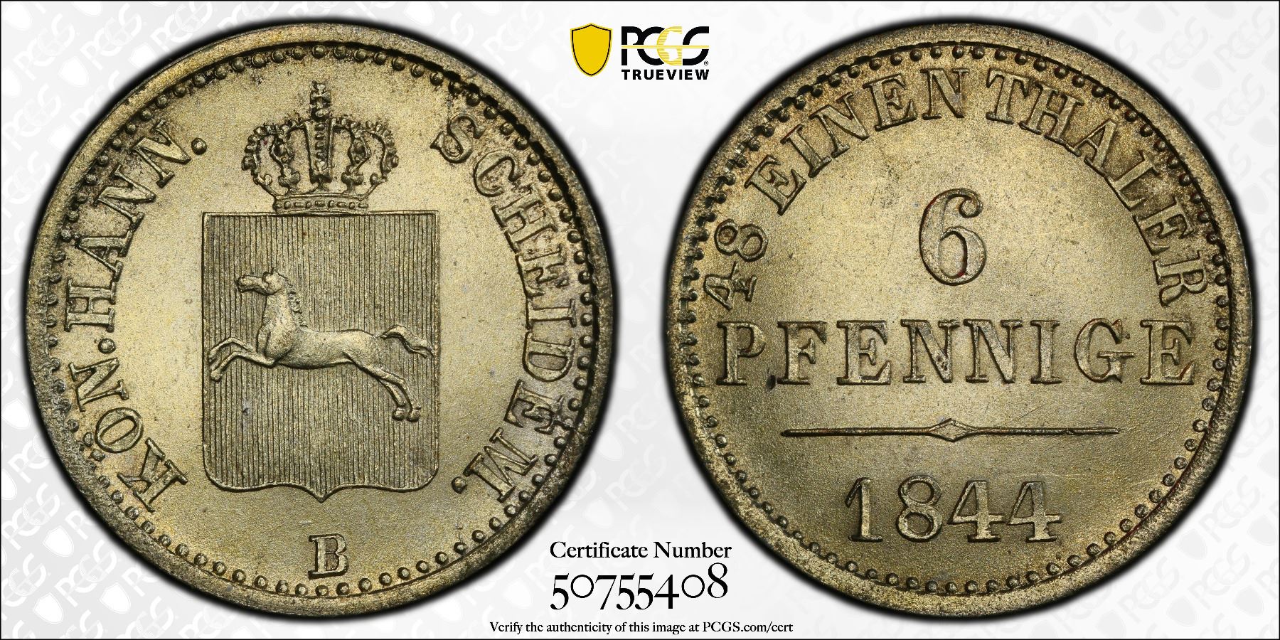 HANOVER: Ernst August I, 1837-1851, BI 6 pfennig, 1844-B, PCGS MS65
