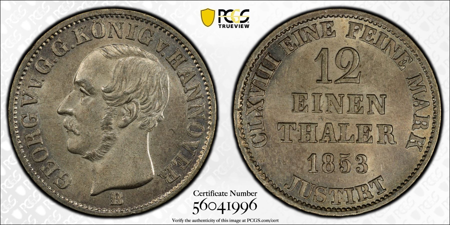 HANOVER: Georg V, 1851-1866, AR 1/12 thaler, 1853-B, PCGS MS62