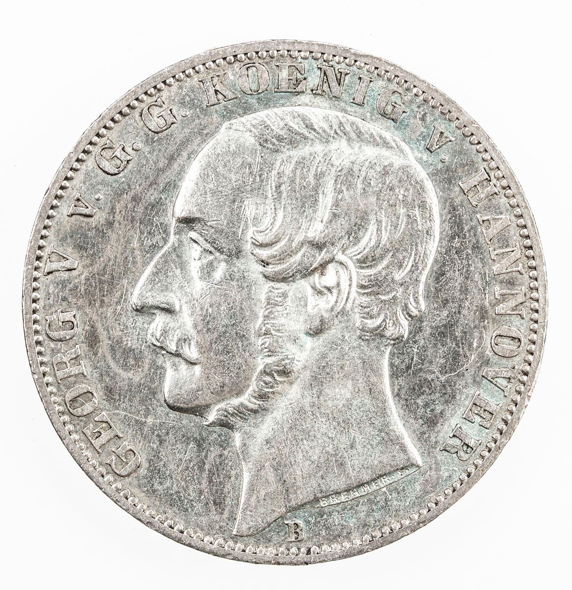 HANOVER: Georg V, 1851-1866, AR thaler, 1866-B, KM-230, lightly cleaned, light PVC residue (removable), EF.