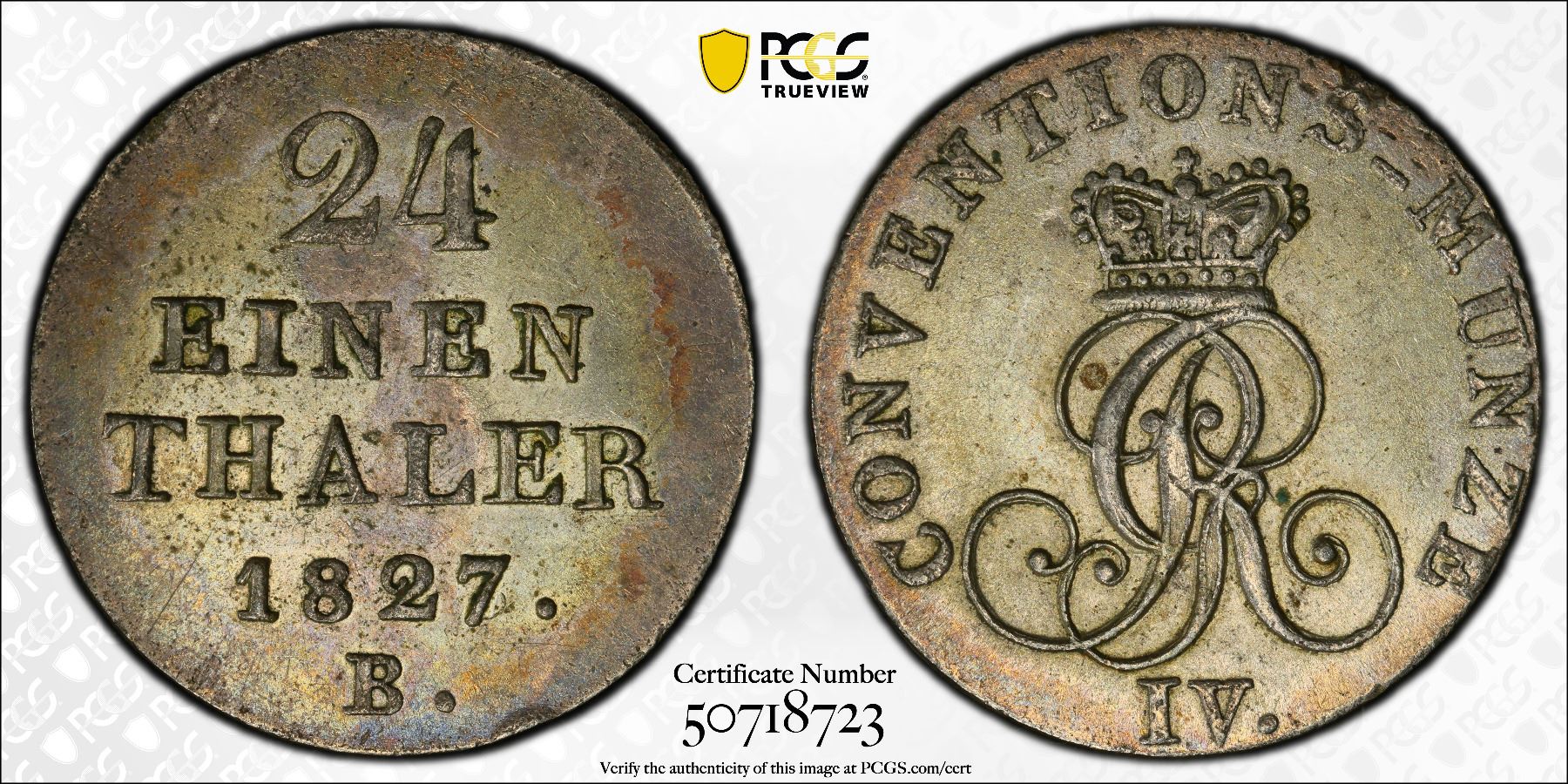 HANOVER: George IV, 1820-1830, BI 1/24 thaler, 1827, PCGS MS63